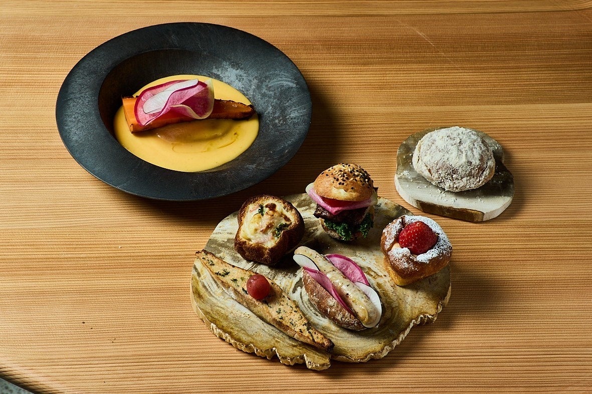 香り豊かに焼き上げたドーナツを添えた、ひと皿でいろいろ楽しめる贅沢なプレートを提供。ランチ限定の特製バーガーも登場し、パンを中心に多彩な味わいを楽しめます。