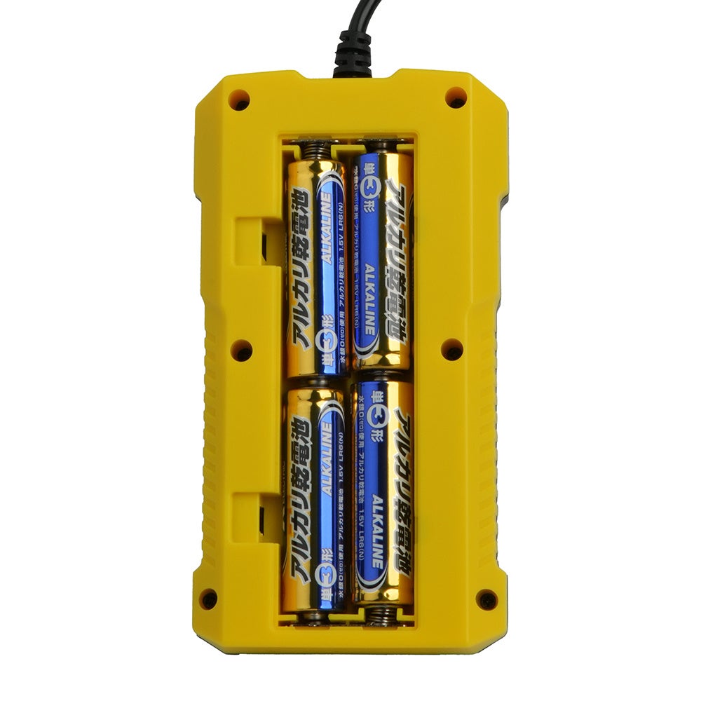 バッテリー充電式ではないため、充電の心配不要。入手が簡単な単3形アルカリ乾電池4本で使用できるので、緊急で使いたい場合などにすぐに対応できます。