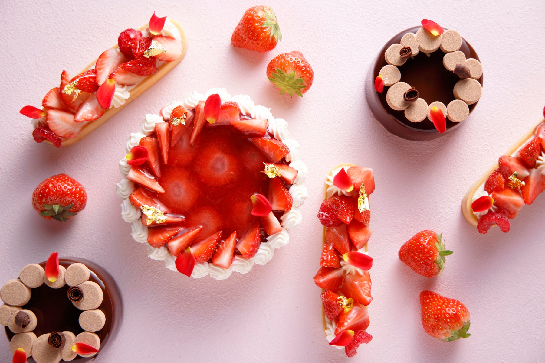 エグゼクティブ ペストリーシェフ ハフィズ・ラザリ率いるチームが手がけるスイーツは、国産苺の持つ瑞々しさと甘酸っぱさを最大限に生かしたラインナップ。しっとりと軽やかな口どけの「ストロベリーショートケーキ」に、濃厚ピスタチオと果実の香りが重なり合う「パリ・ブレスト」、ホワイトチョコレートムースにストロベリージュレを忍ばせた上品な一品など、冬の苺の魅力を多彩なクリエーションで表現します。「バスクチーズケーキ」や「レモンタルト」など、酸味とのコントラストを楽しむスイーツも揃い、一品ごとに異なる表情をご堪能いただけます。