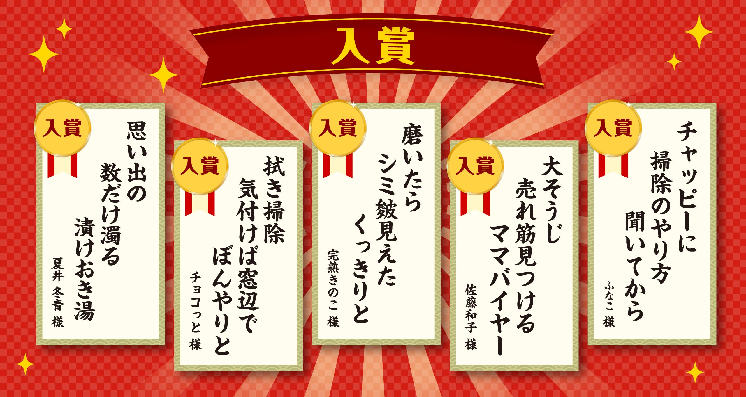 入賞は今年の流行語大賞にノミネートされた「チャッピー」ことChatGPTにまずは掃除のやり方を確認してから始めるという一句や、大掃除で見つけたものを売れ筋商品に変えてしまう敏腕ママを表現する一句、きれいになった鏡を見たら向き合いたくないものも見えてしまった様子を詠んだ一句、漬けおき洗いで出てきた汚れを思い出と表現した一句などの5作品。