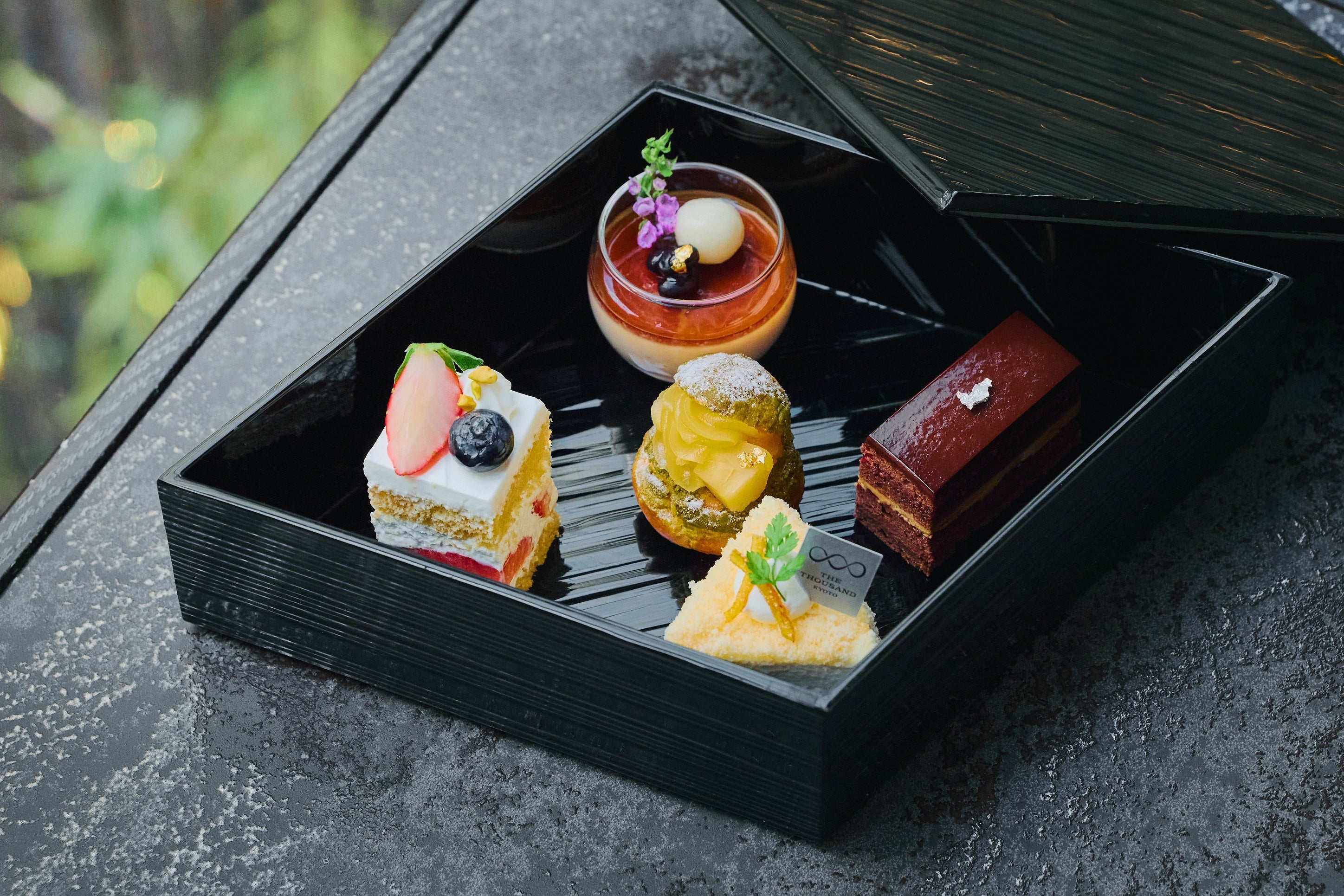 ■TEA AND BAR 「5種の御重スイーツセット」和テイストのスイーツやクラシカルなケーキを含む5種のスイーツを揃えた「御重スイーツセット」。ご家族などでのお集まりでシェアしても楽しめます。コーヒーや和紅茶などお好みのドリンクと合わせて、憩いのひとときをお過ごしください。