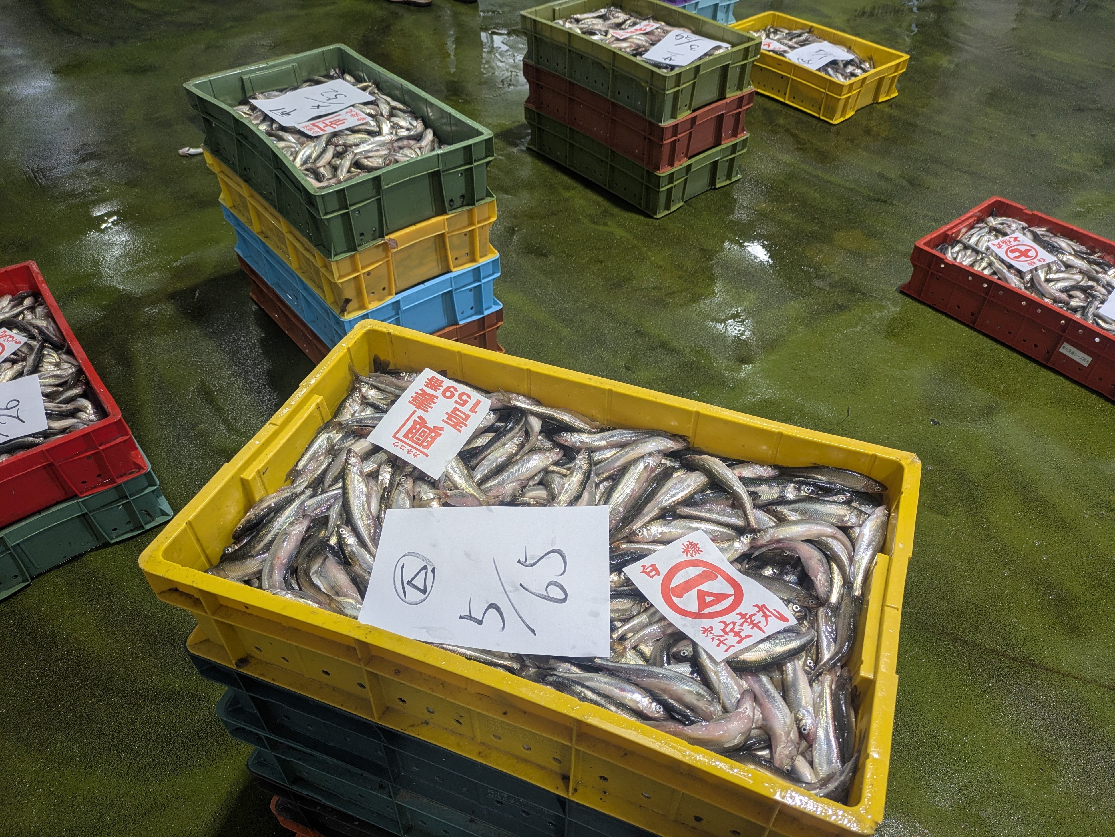 ちなみに、トムとアレンも参加する「ししゃも漁」で水揚げされたししゃもは、白糠漁港の市場で競りにかけられます。