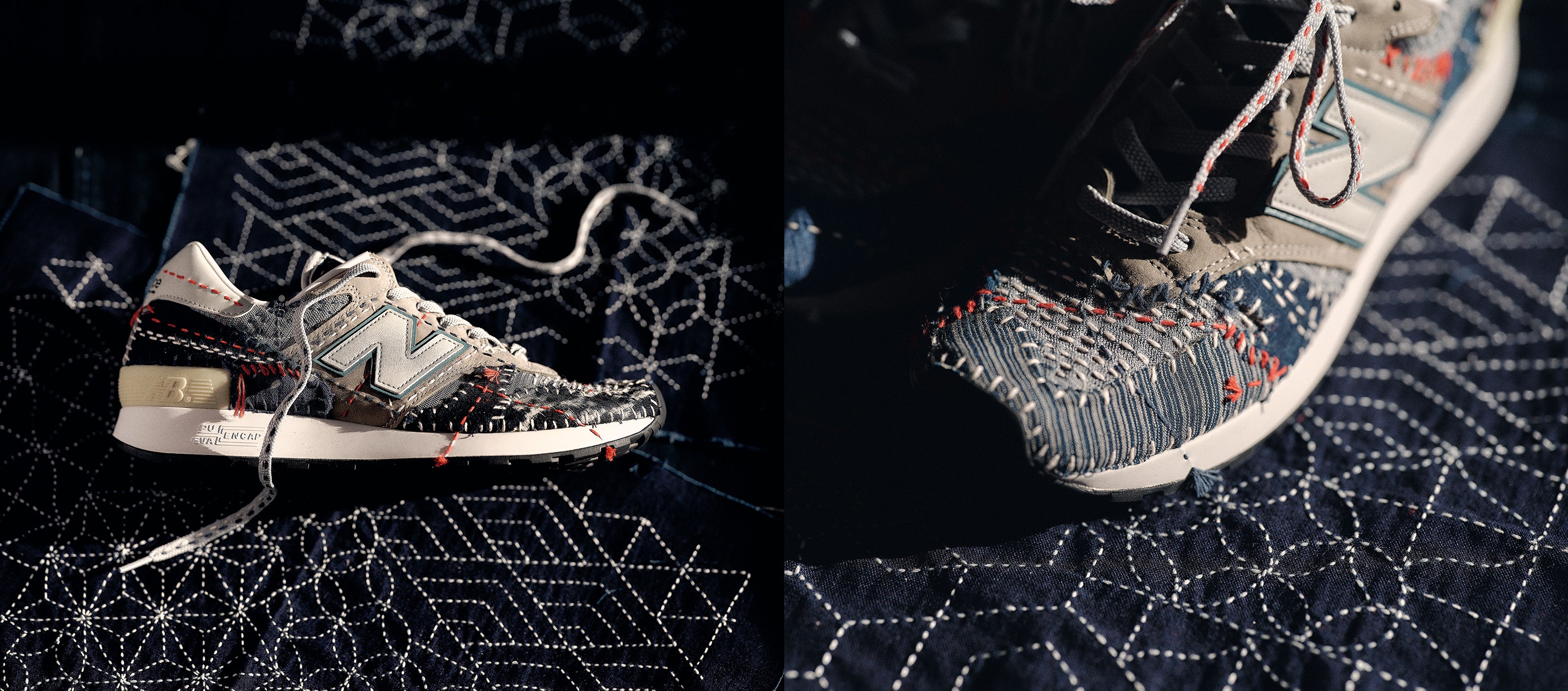 刺し子は、古来より日本で受け継がれてきた補強と装飾の技術。ニューバランスとサシコギャルズはこの技術を現代のスポーツカルチャーと結びつけ、世界中に新たな価値として提案します。今回のコラボレーショでは、ニューバランスの象徴的なアイテムに一点一点手作業による刺し子が施され、サシコギャルズ独自のデザインが込められています。
