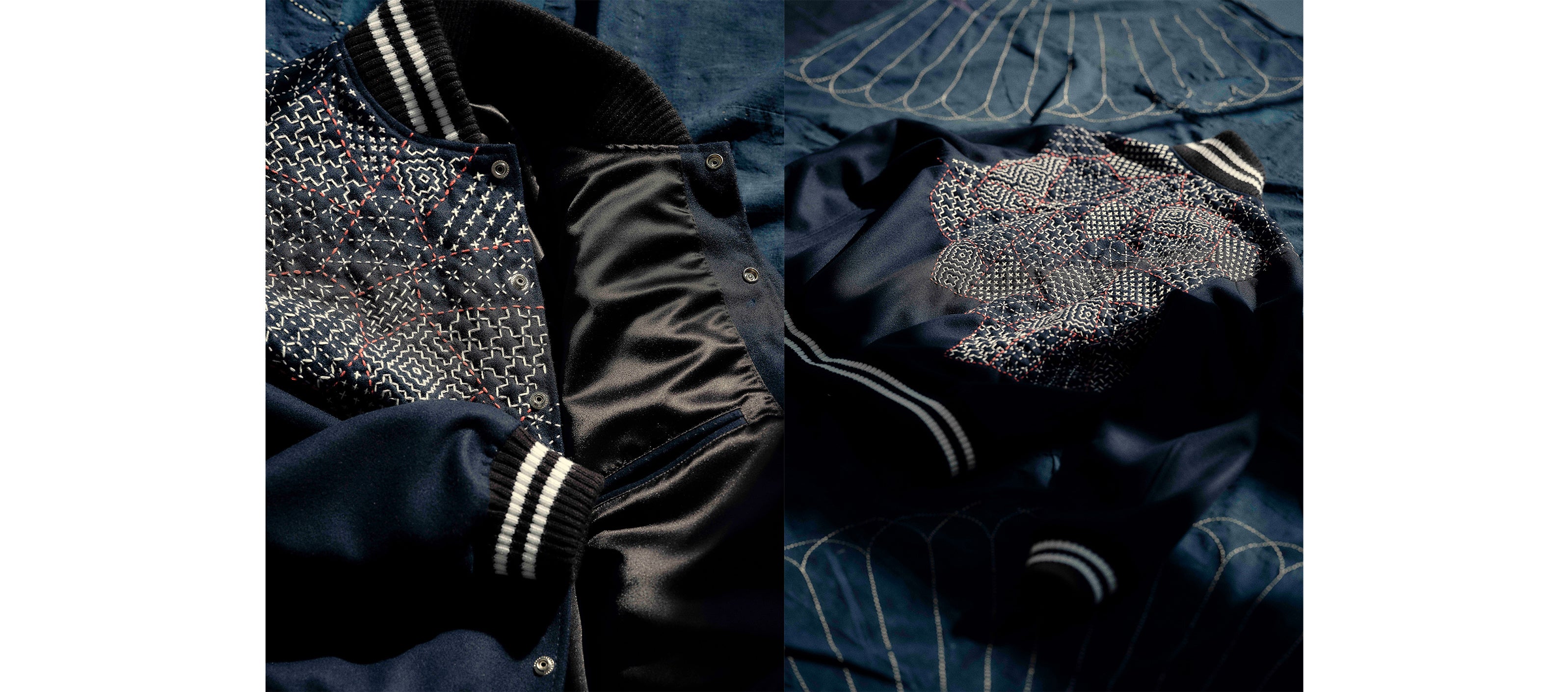 本プロジェクトでは、ニューバランスのフラッグシップモデルのひとつである「Made in U.S.A. 1300JP」と、アメリカンカルチャーを象徴する「プレミアムヴァーシティジャケット」をベースに、サシコギャルズによる刺し子カスタマイズを施した限定アイテムを製作。伝統工芸と現代ストリートカルチャーが交差する、唯一無二のプロダクトが誕生しました。「Made in U.S.A. 1300JP」は2足、ヴァーシティジャケットは4着のみ、限定販売いたします。