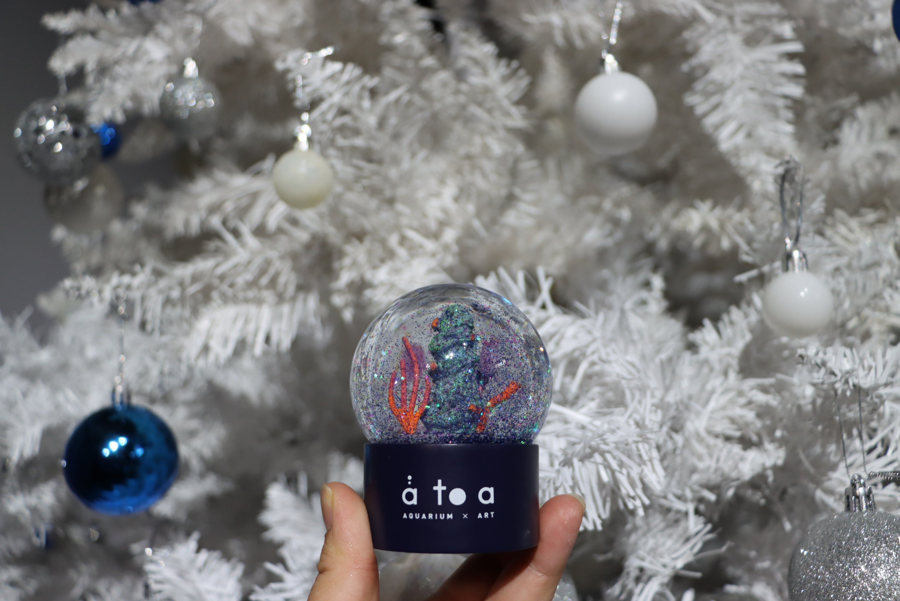 国内最大級の球体水槽“AQUA TERRA”がそのまま小さな世界に閉じ込められたような、ここでしか手に入らない特別なアイテムです。アトアで過ごした楽しいひとときを思い出させてくれる、記念やギフトにぴったりのスノードーム。手のひらサイズで場所を選ばず、玄関やデスク、リビングの一角で気軽にお楽しみいただけます。
