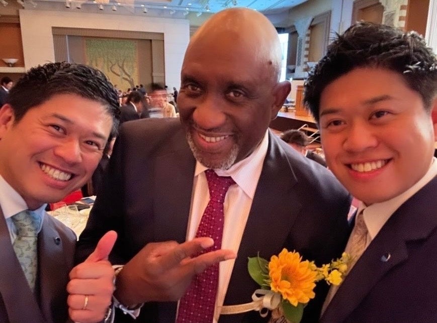(左)専務取締役・稲場康祐(中央)国際博覧会副会長・ウスビ・サコ氏(右)代表取締役・稲場基泰