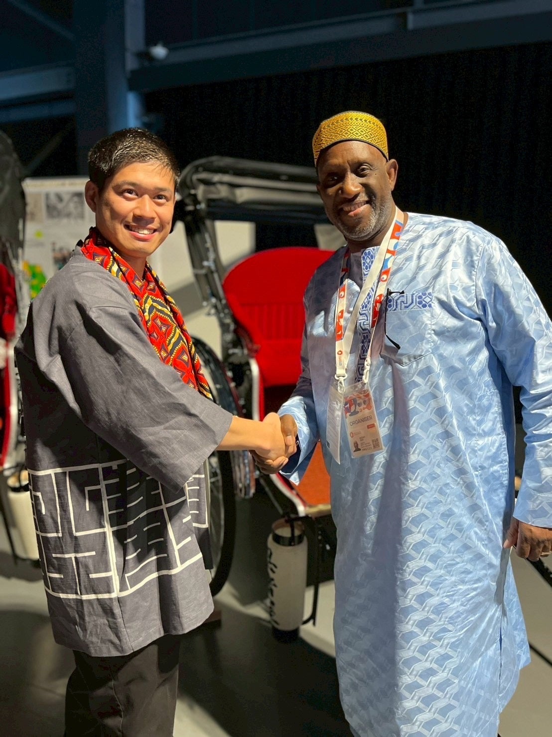 (左)株式会社トラーチ専務取締役・稲場康祐 (右)国際博覧会副会長・ウスビ・サコ氏