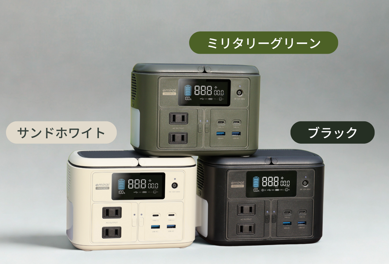 本製品は「ブラック」「サンドホワイト」「ミリタリーグリーン」の3色を展開。使用シーンやインテリアに合わせて選べるだけでなく、屋外・屋内問わず調和するデザインを採用しました。