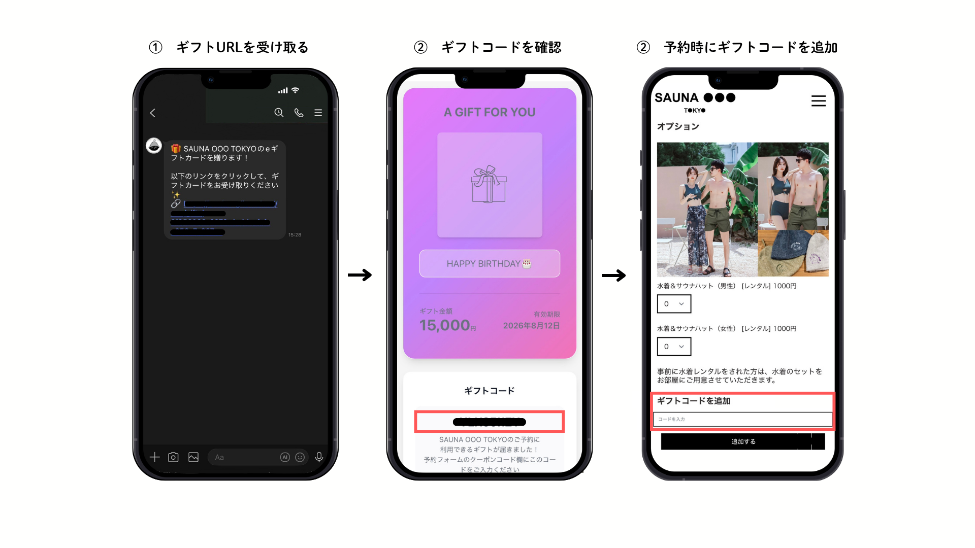 3. サウナの予約時にギフトコードを入力