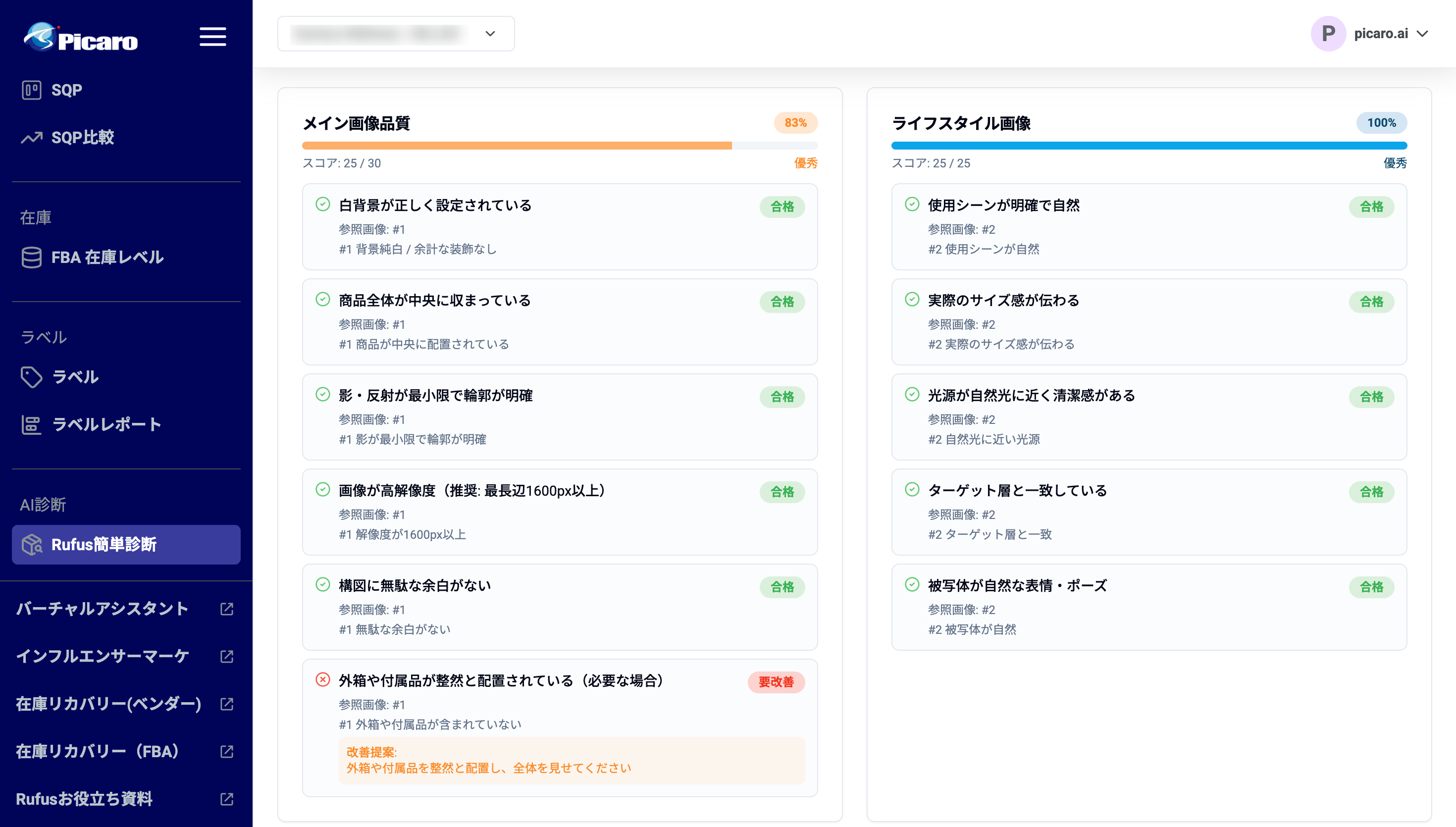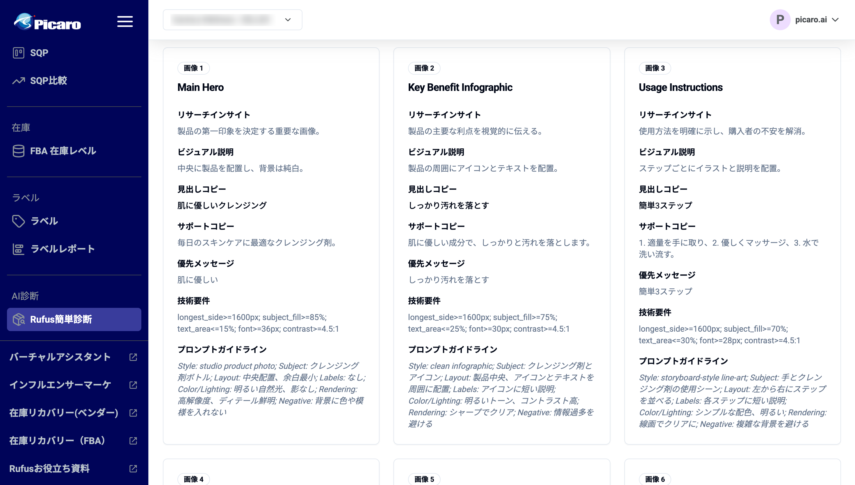株式会社Picaro.ai(東京都港区、代表取締役:下平季位)は、Amazon販売事業者向けのバーチャルアシスタントサービスにおいて、AmazonのショッピングアシスタントAI「Rufus」に対応した 画像AIO診断機能 をリリースしました。