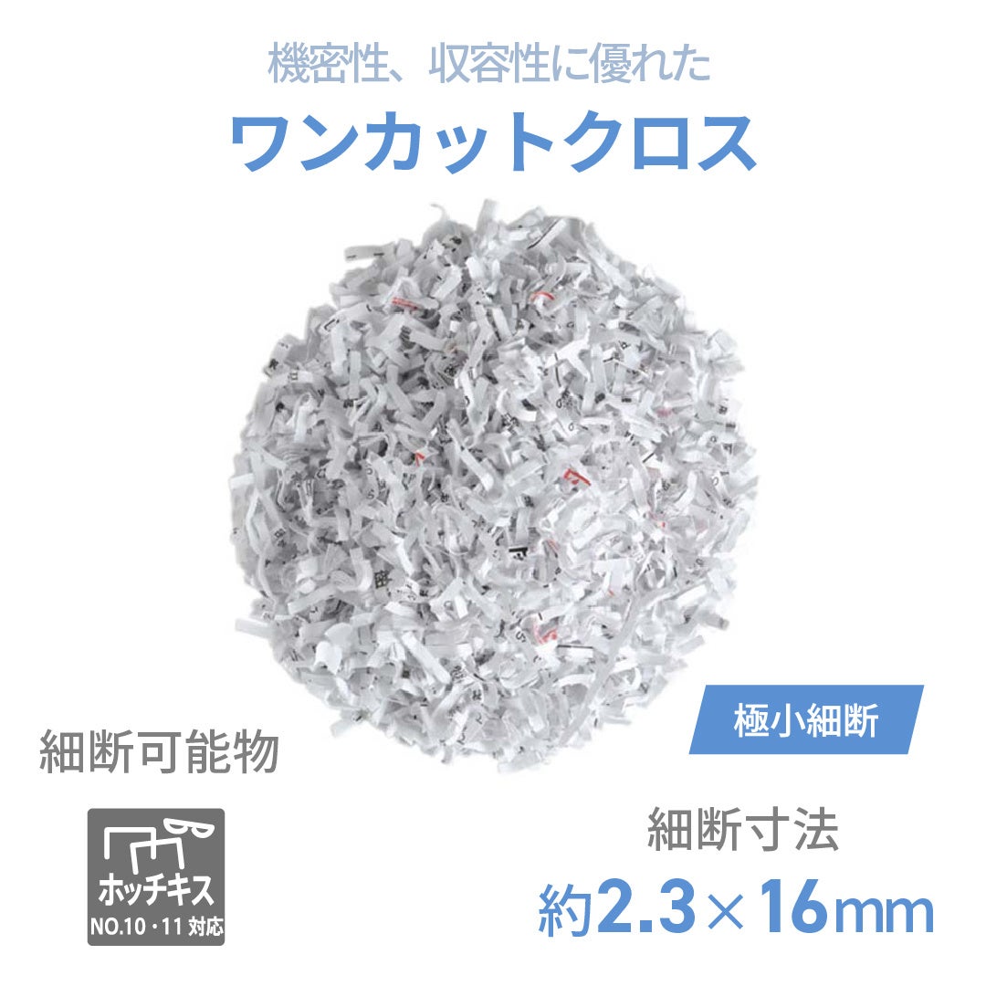 A4用紙最大10枚細断可能なワンカットクロスシュレッダー。細断サイズ約2.3×16mmの極小細断で、小さい文字の書類も安心して処分ができます。