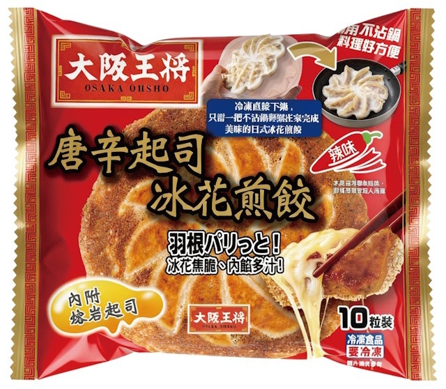 このたび『大阪王将 冰花圓盤煎餃』のシリーズ展開として、辛いフレーバーに、スライスチーズを添付した新商品『大阪王将 唐辛起司冰花煎餃』を販売いたします。具材の辛さには、唐辛子と甜麺醤、豆板醤、コチュジャンの3種の醤とラー油を使用しています。辛い餃子とチーズがあわさることでまろやかに、とろっとチーズで食べる今までにない食感をお楽しみいただけます。『大阪王将 唐辛起司冰花煎餃』は、台湾国内で約1,200店舗を展開する「全聯福利中心Pxmart」を中心に、販売をしてまいります。