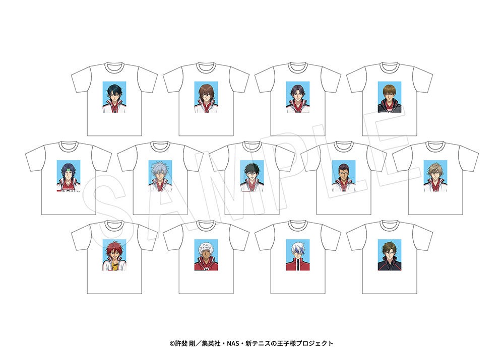 リョーマたち13人の描き下ろしイラストを使用した「アクリルフィギュアスタンド」のほか、先行通販商品として「選手名鑑ステッカーセット」や「選手名鑑Tシャツ」なども登場します!