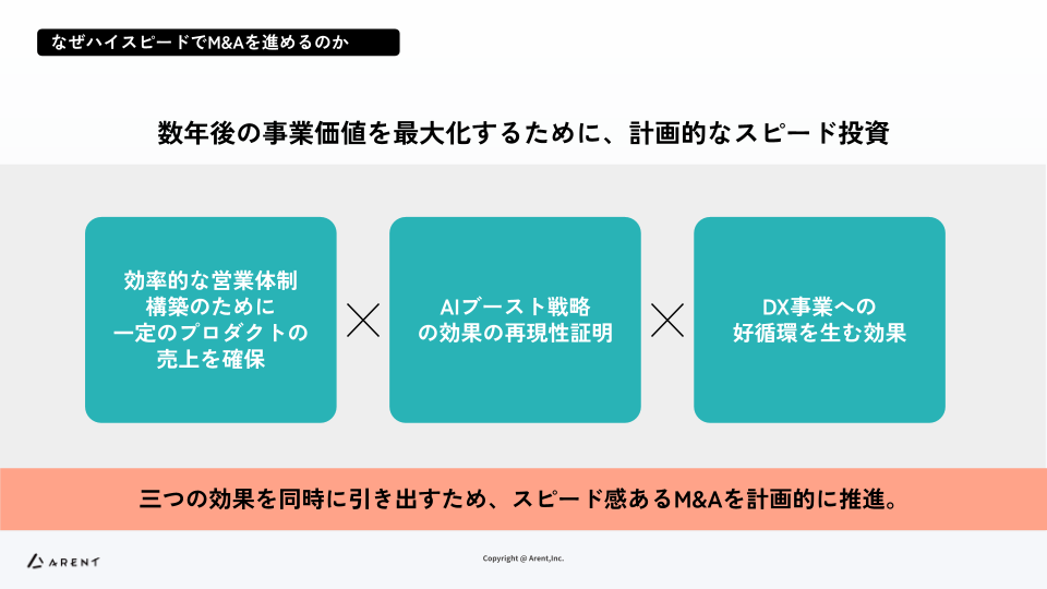 これらは場当たり的な案件ではなく、上場時から描いてきた中長期ロードマップにもとづく計画的な投資であり、「あえてスピード感を持って進めている」ことに明確な意図があります。