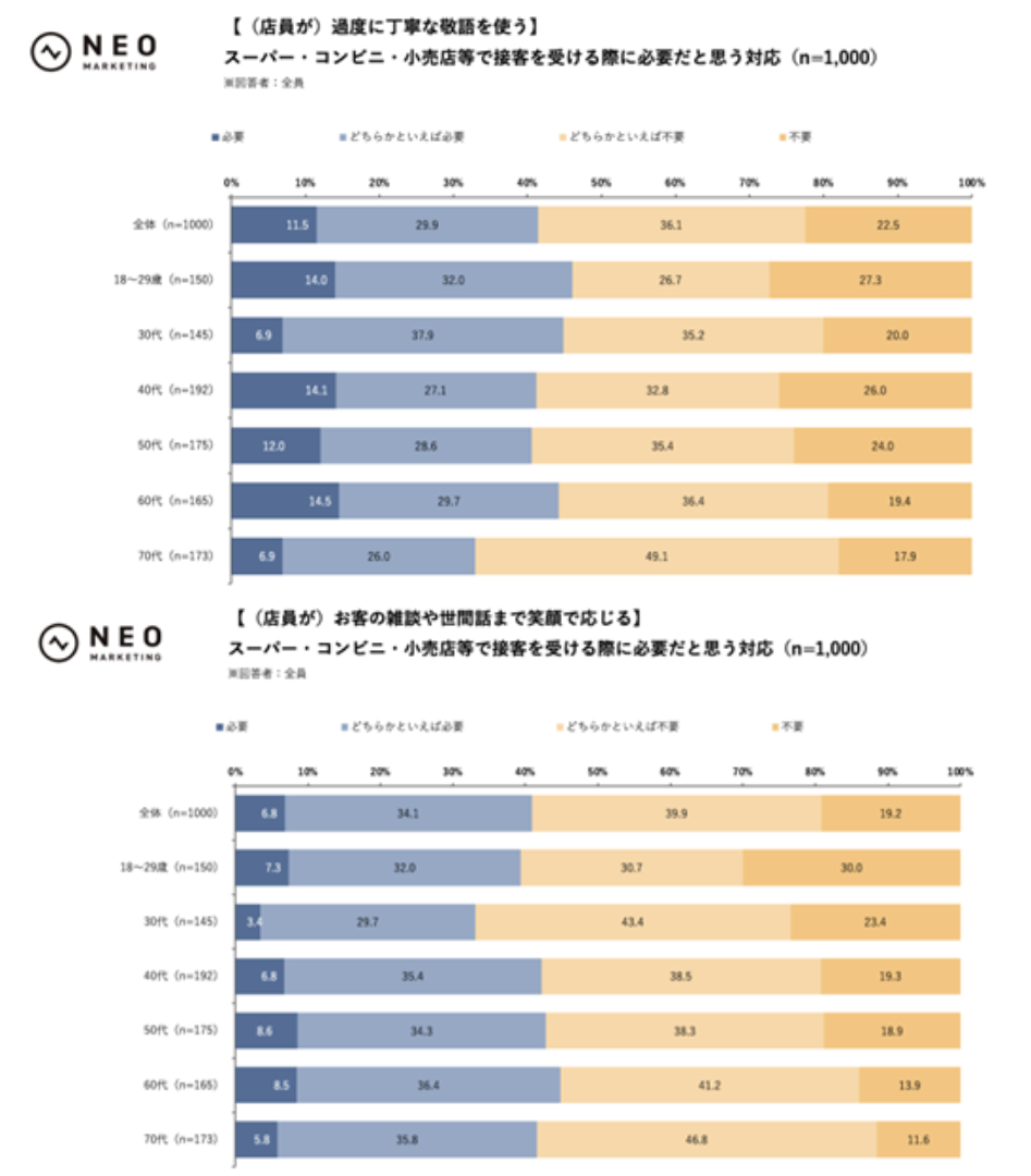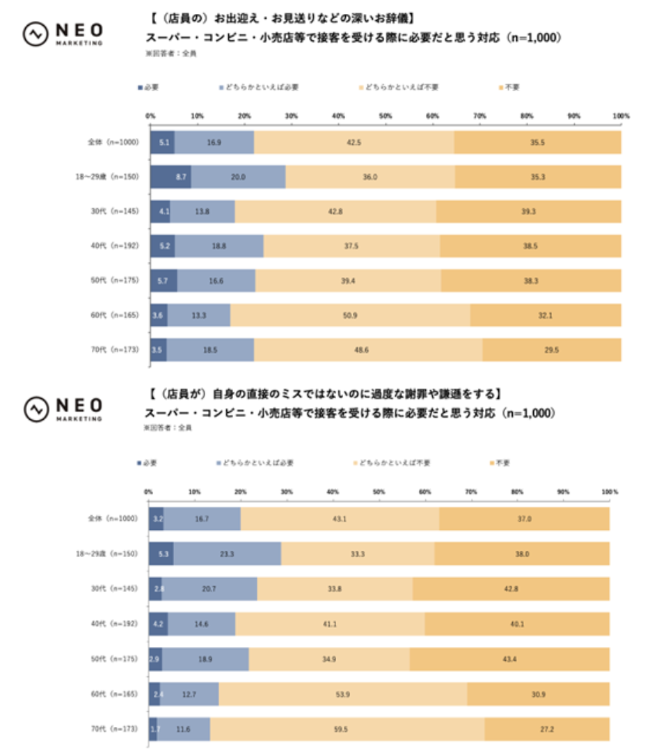 スーパーやコンビニ、小売店等で接客を受ける際、以下の対応をどの程度必要だと思うかをお聞きしました。