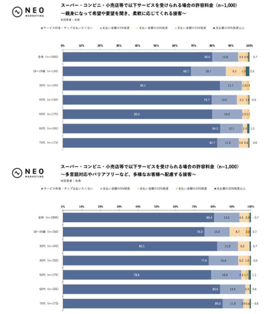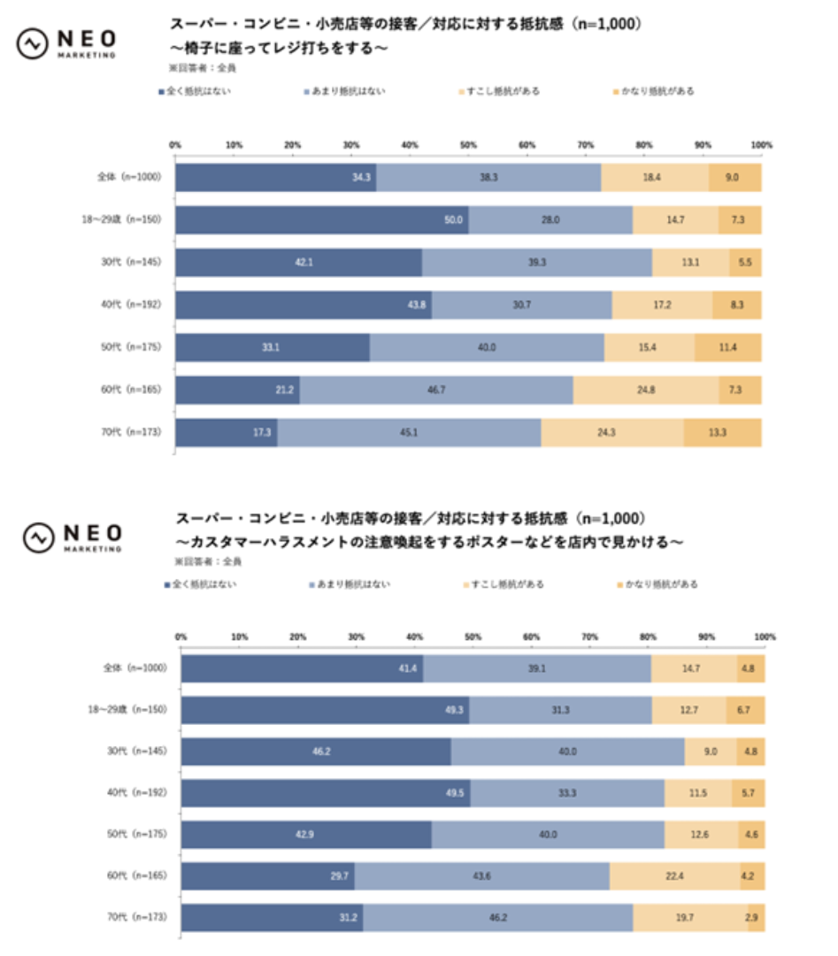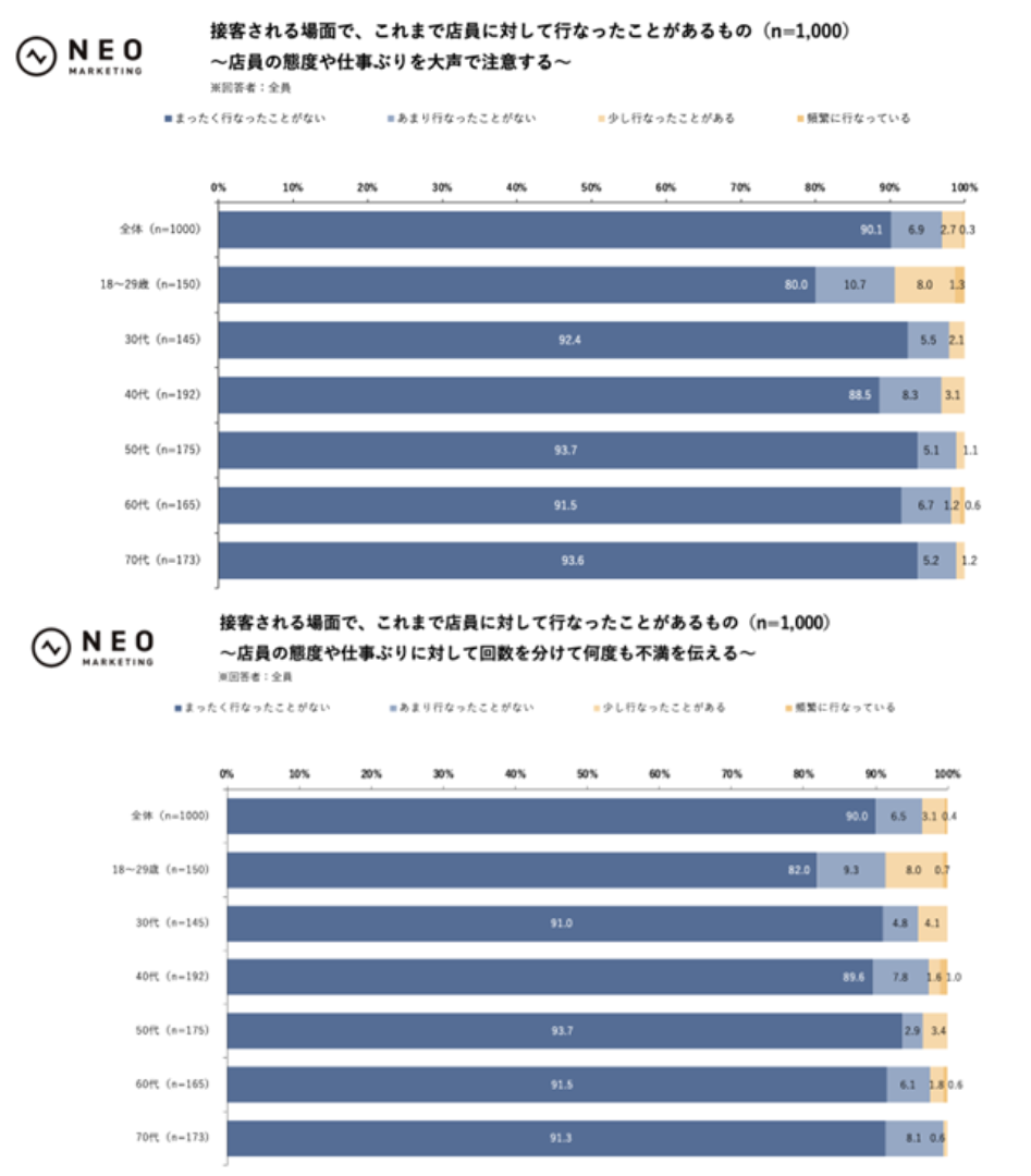 マーケティング支援事業を提供する株式会社ネオマーケティング(所在地:東京都渋谷区)は、一般社団法人社会調査支援機構チキラボ(東京都、代表理事・荻上チキ)と、2025年10月17日(金)~2025年10月24日(金)の8日間、全国の18~79歳男女を対象に「接客サービス」をテーマにインターネットリサーチを実施いたしました。