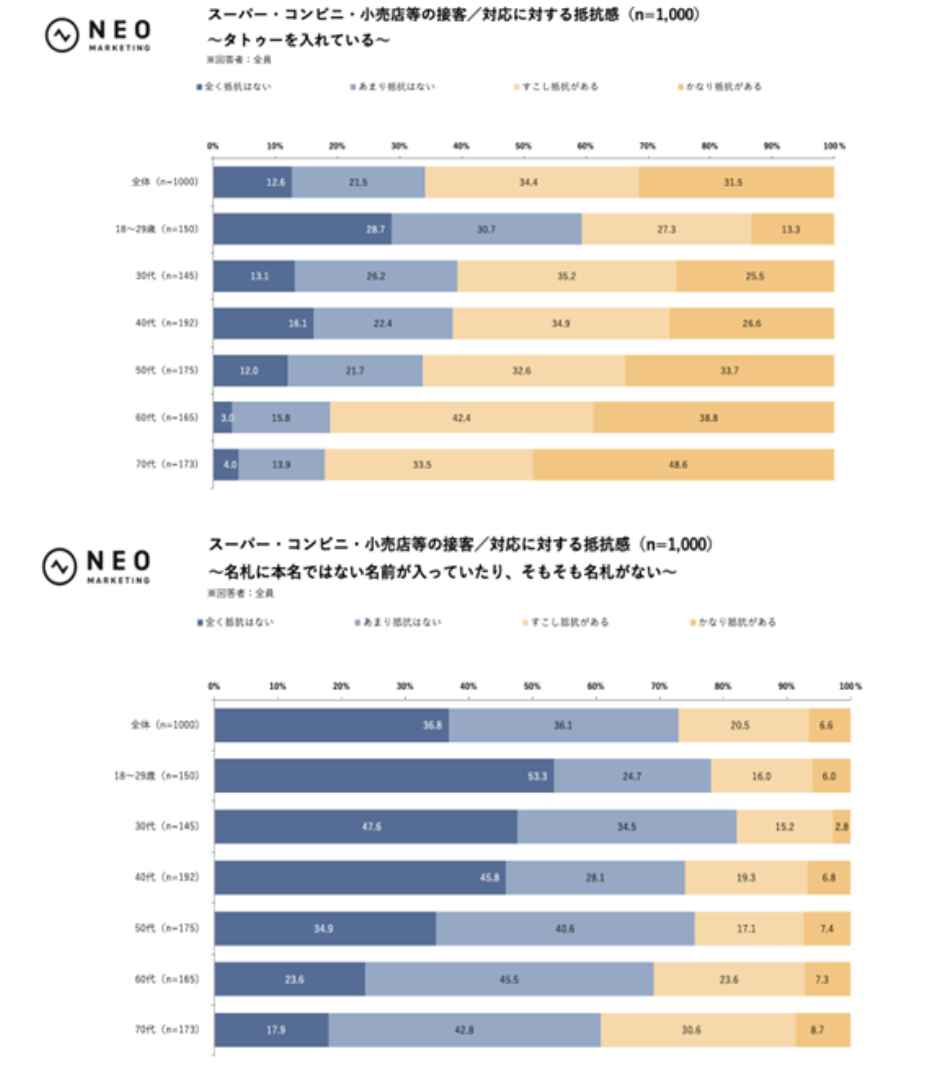 ・髪色、ピアスは年代問わず概ね抵抗なし。椅子に座ってのレジ打ちに抵抗感を抱く割合は年代によって32.7ポイントもの開きあり。