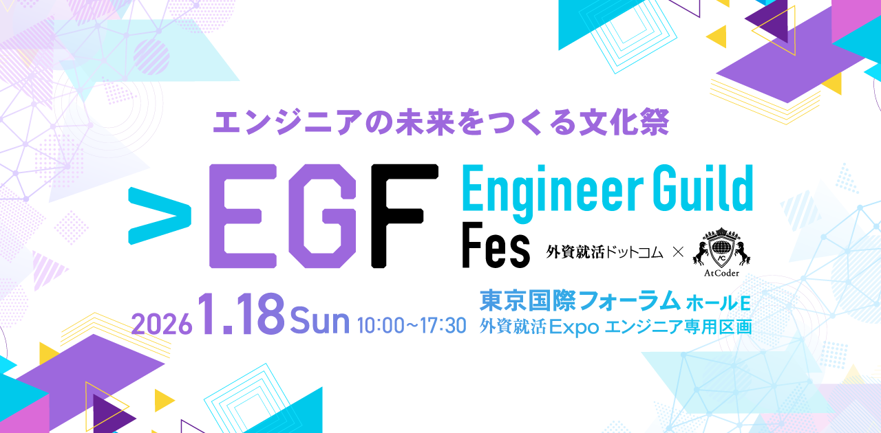 「世界で挑戦できる人材を育み、未来を創る」を掲げ、ユーザーファーストを追求したキャリアプラットフォーム「外資就活ドットコム」を運営する株式会社ハウテレビジョン(本社:東京都港区、代表取締役:音成洋介)は世界最高峰の競技プログラミングコンテストサイト「AtCoder」と共同でエンジニアの未来をつくる文化祭「Engineer Guild Fes」を2026年1月18日(日)に初開催いたします。
