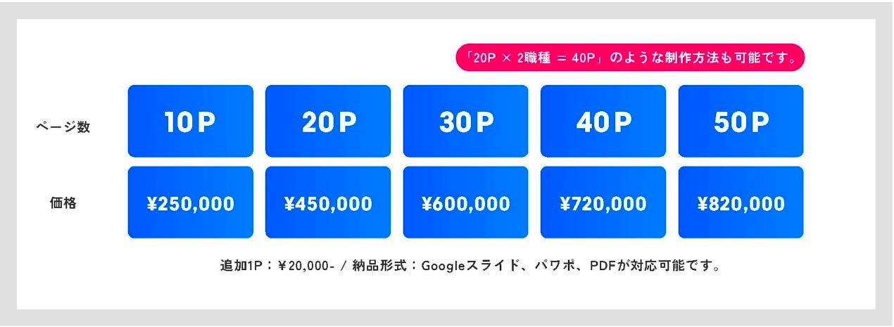 「職種別に10ページずつ」など柔軟な設計にも対応しています。