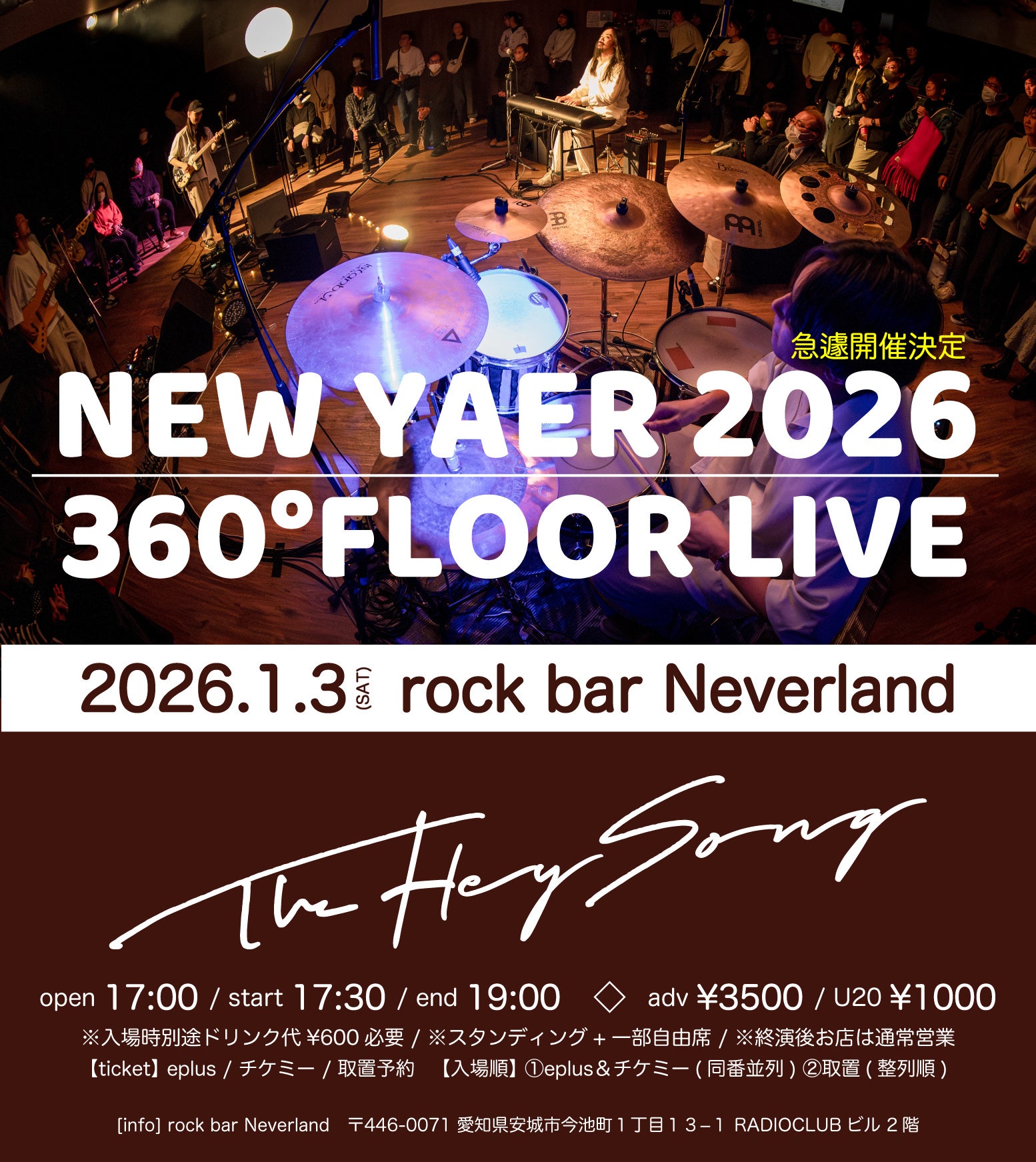 毎年NAGOYA JAMMIN'で開催されてきたThe Hey Songの年始恒例フロアワンマンライブ。