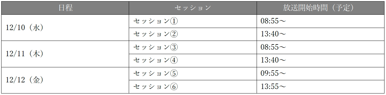 ※ TBNについては決まり次第お知らせいたします。