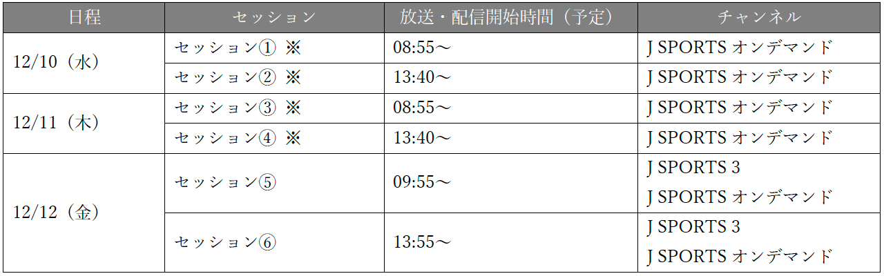 ◆『J SPORTS』放送・配信スケジュール