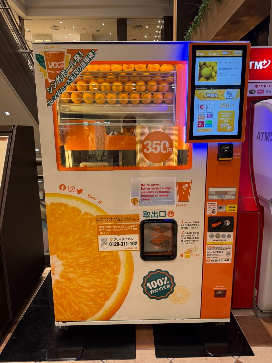 【シンガポール発!関東・関西・東海・九州・中国エリアで人気の生搾りオレンジジュース自販機】