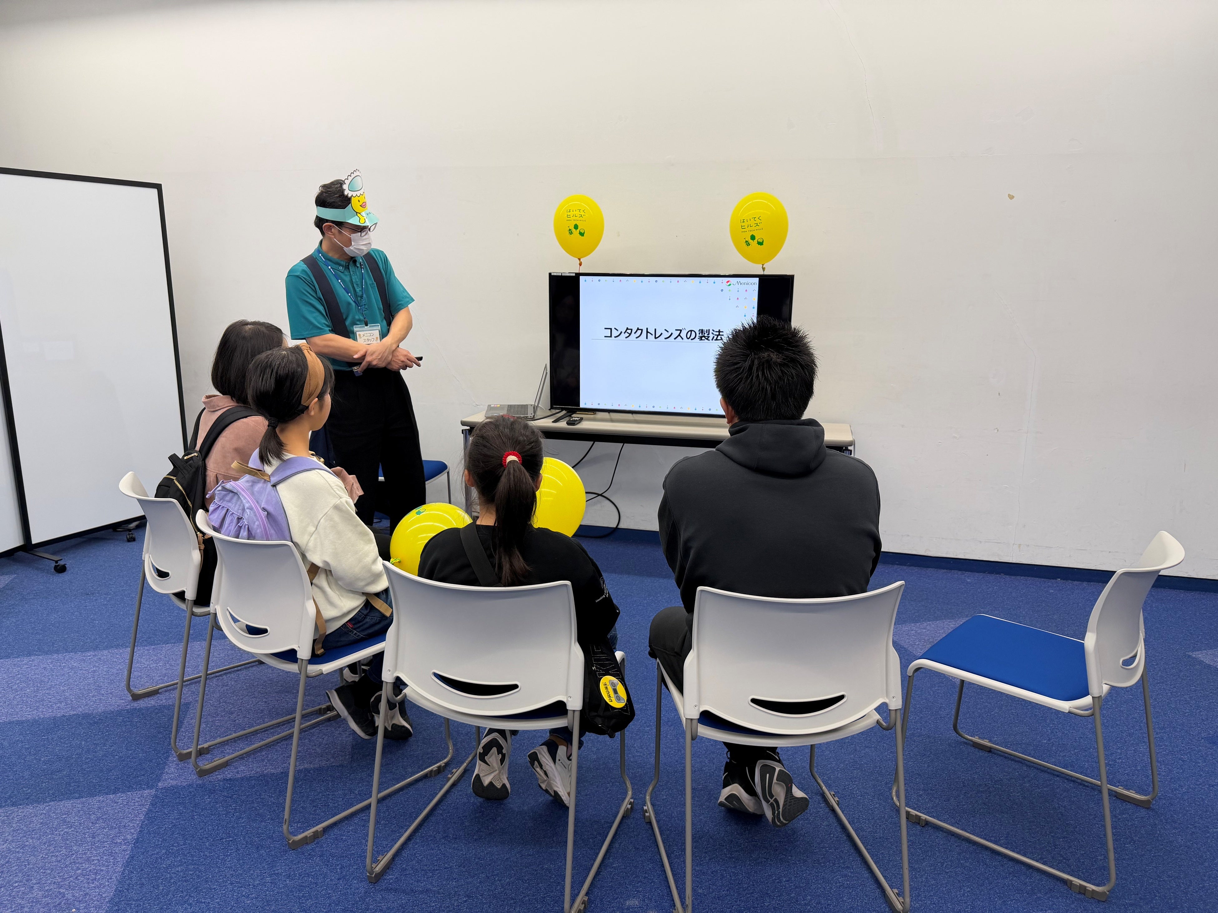 当社は、今回初参加し、2025年11月24日にテクノプラザ ものづくり支援センター本館にて、各務原工場で生産されているコンタクトレンズの「見て・触れる」体験や、家族で目の健康について楽しく学べる体験型展示「みるパーク」を実施しました。当日は、約140名の方々にご参加いただき、参加者からは、「初めてコンタクトを触った!」という驚きの声や、「コンタクトデビューを迷っていたので参考になった」という感想、さらに「家族で目を大切にすることを考えるきっかけになった」といった嬉しいコメントをいただきました。