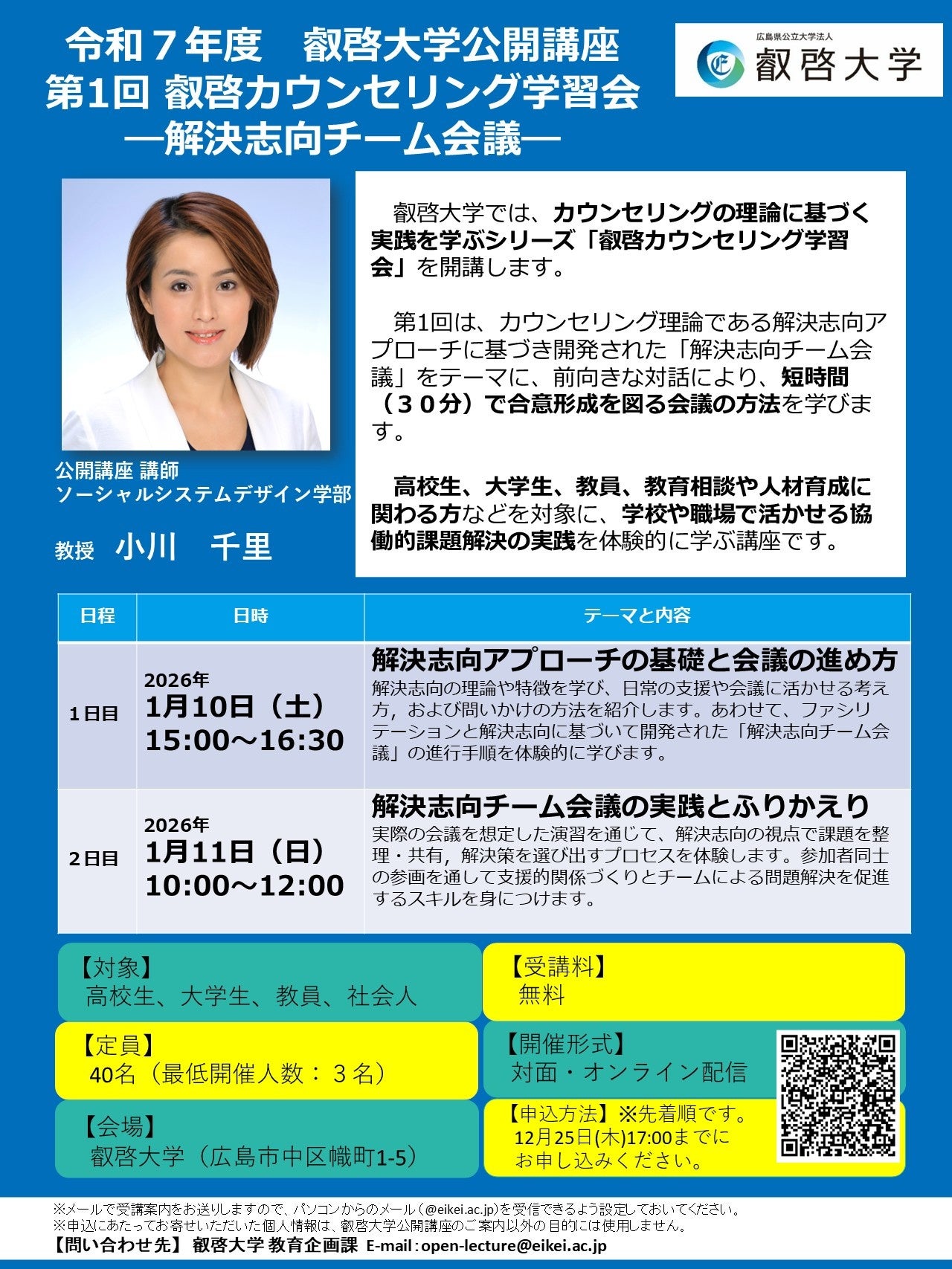 【受講者募集】2025年度公開講座 第1回叡啓カウンセリング学習会:解決志向チーム会議 - 【公式サイト】広島県公立大学法人 叡啓大学