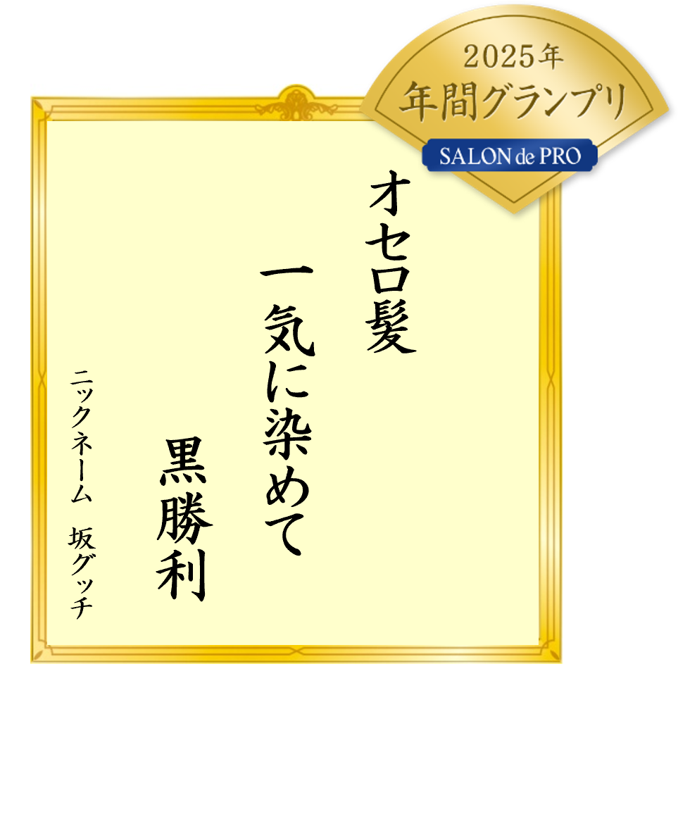 「サロン ド プロ 白髪川柳」はニオイのない※白髪染め「サロン ド プロ」が2012年秋から実施している川柳コンテスト。毎月1回その月の優秀作品5句を選定し、サロン ド プロ ブランドサイトで発表しています。そしてこのたび、2025年の優秀作品としてノミネートされた60句の中から、2025年の年間グランプリを一句選定いたしました。さらにサロン ド プロのCMに出演している俳優2名の選出による、「名取裕子賞」「高岡早紀賞」、またブランド戦略担当者が日頃の感謝を込めて選出した「サロン ド プロ ブランドマネージャー賞」も同時に設け、合計4句が選ばれました。