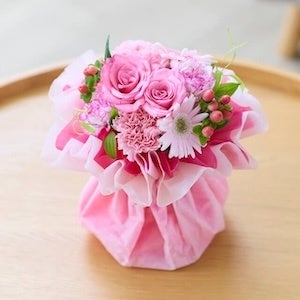 スタッフコメント:お祝いや応援のキモチに添えて贈りたいお花。お相手によっては花瓶を持っていない方もいらっしゃるので、「そのまま飾れる」ブーケが贈りやすく、人気を集めています。