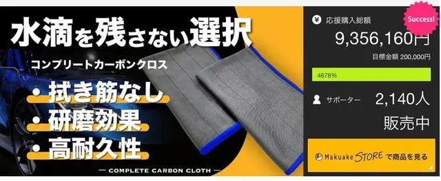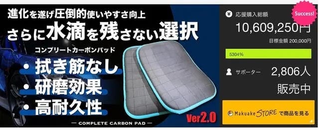 プロジェクト名:「累計5,700万円超!カーボンSTICKで簡単超光沢、拭き筋残らずプロ級の仕上がり」