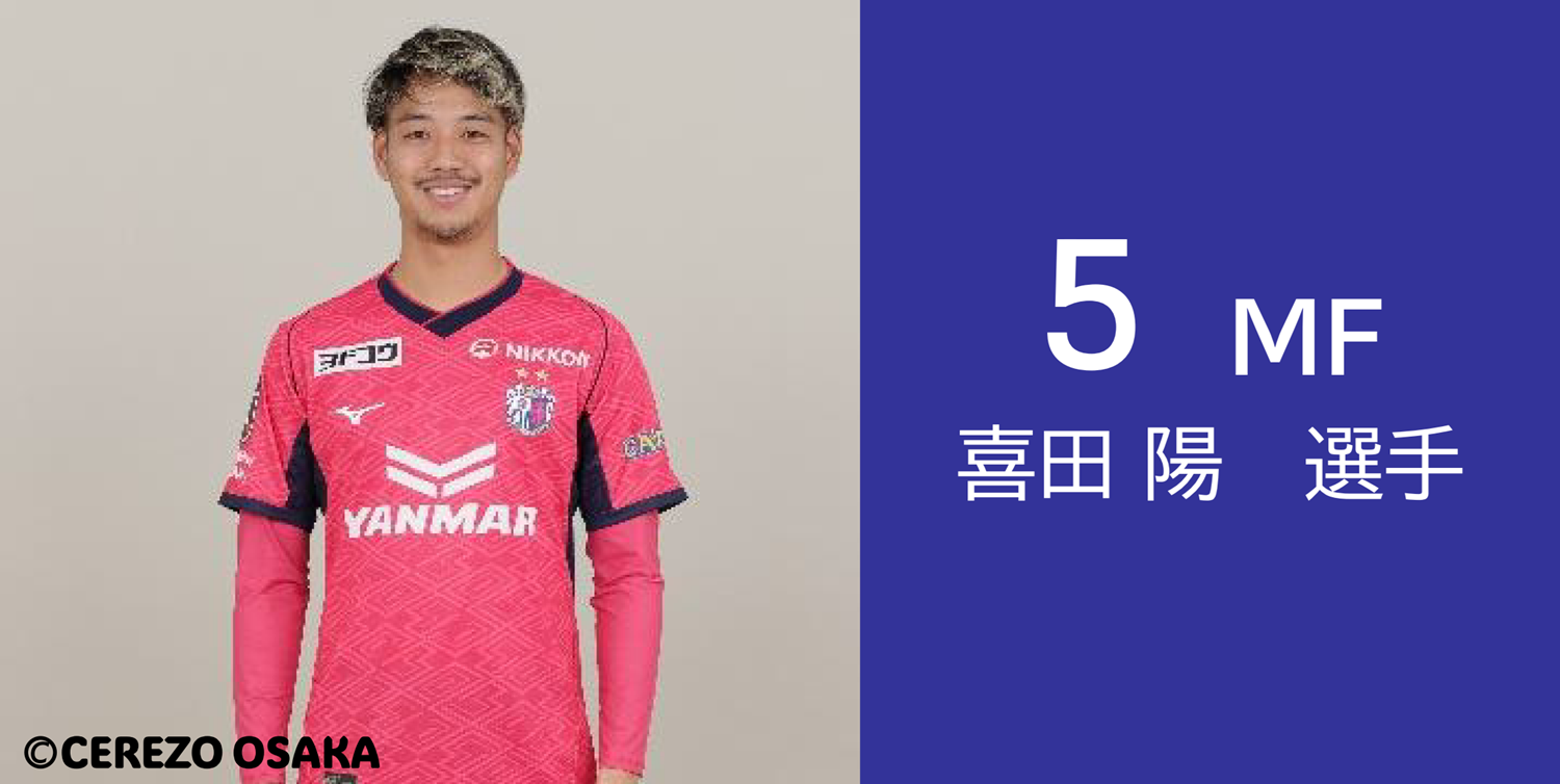 喜田陽(きだひなた)選手は、大阪府出身のプロサッカー選手で、ポジションはミッドフィールダー(MF)、U-20日本代表経験もある若手有望株。2025シーズンよりレギュラーにも定着、今後のセレッソ大阪に欠かせない選手。