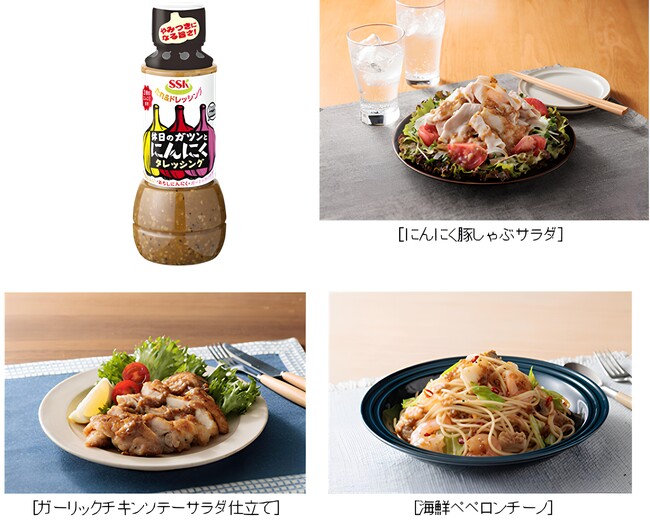 エスエスケイフーズ株式会社(本社:静岡市葵区)は、日頃ご愛顧いただいている「SSKドレッシング(バラエティフレーバー)」に新味として「SSK 休日のガツンとにんにくタレッシング」を発売致します。