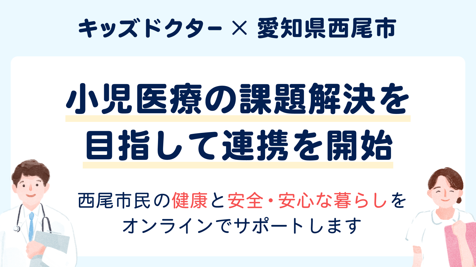 この課題を解決するために、この度オンライン診療アプリ「キッズドクター」と西尾市は連携協定を締結しました。まずは西尾市民に、キッズドクターアプリ内で利用できる「チャット健康相談」の相談回数無制限プランをご提供します(2026年1月13日(火)から利用可能)。