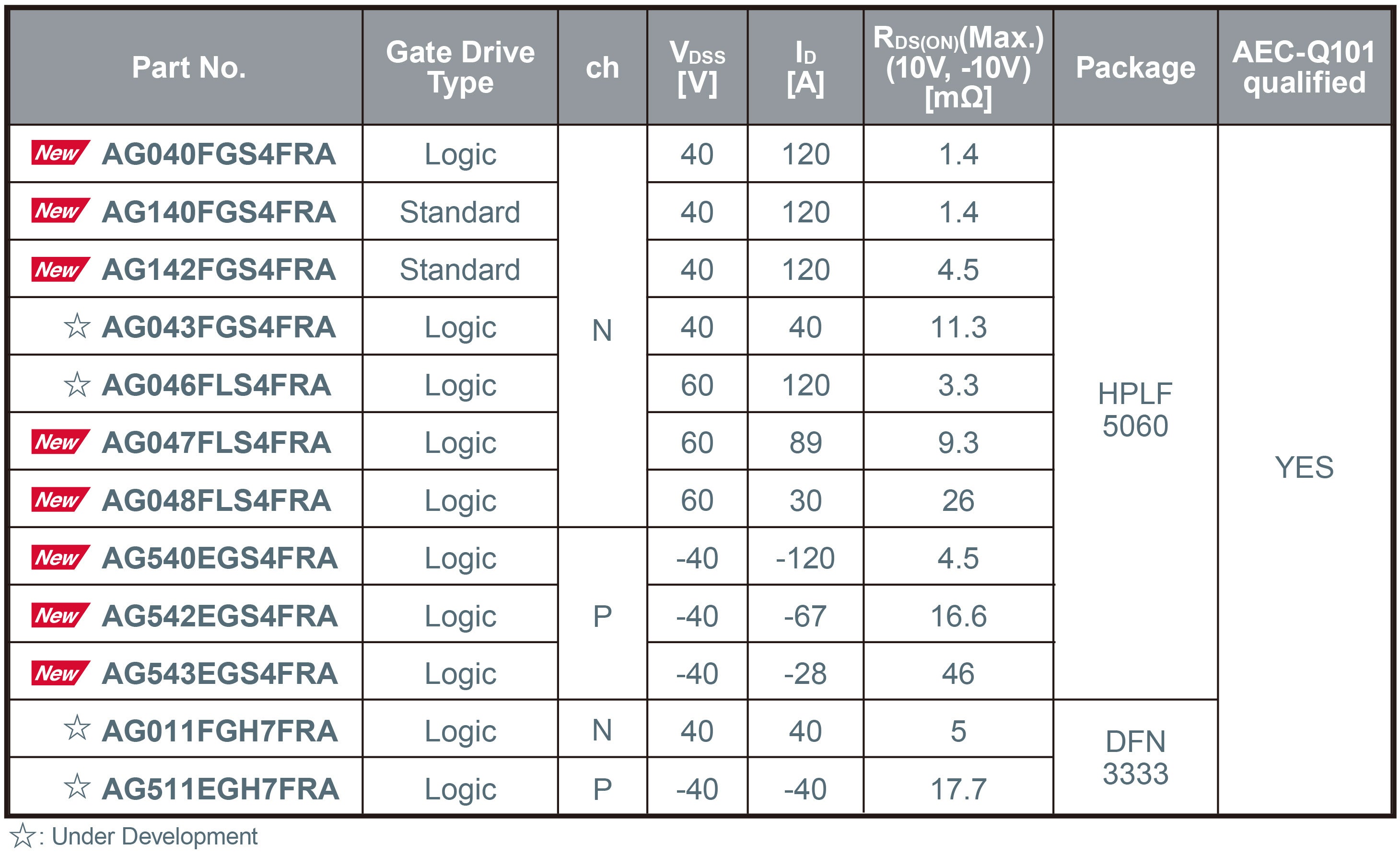 40V/60V車載MOSFET HPLF5060パッケージ品 ラインアップ