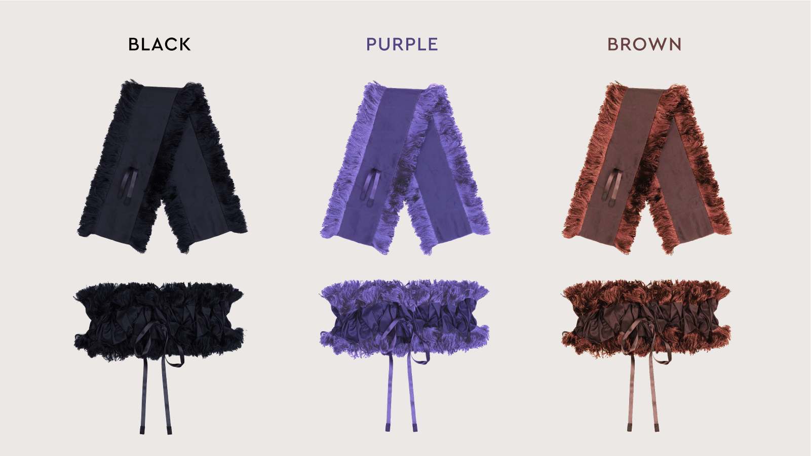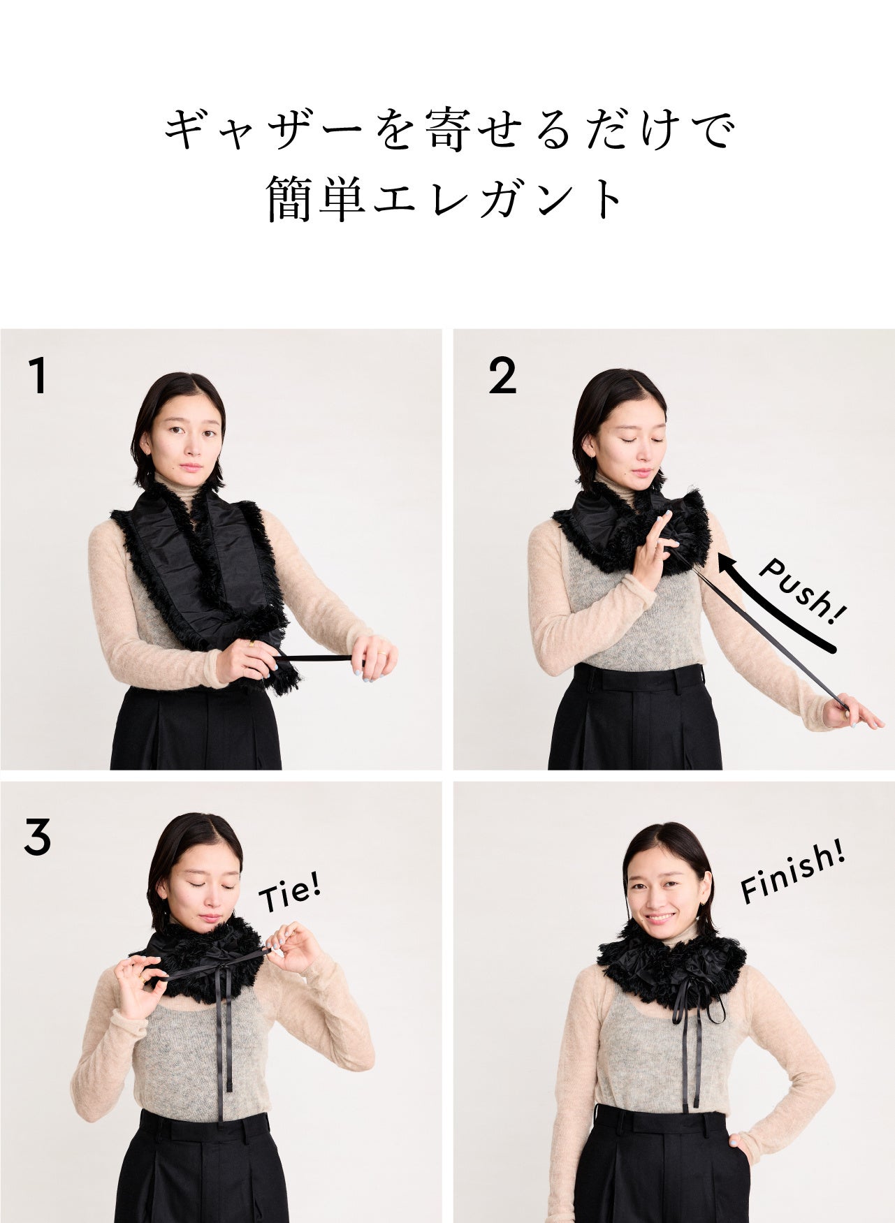 ーギャザーを寄せることでアレンジは自由自在。新しい装身具の提案ー