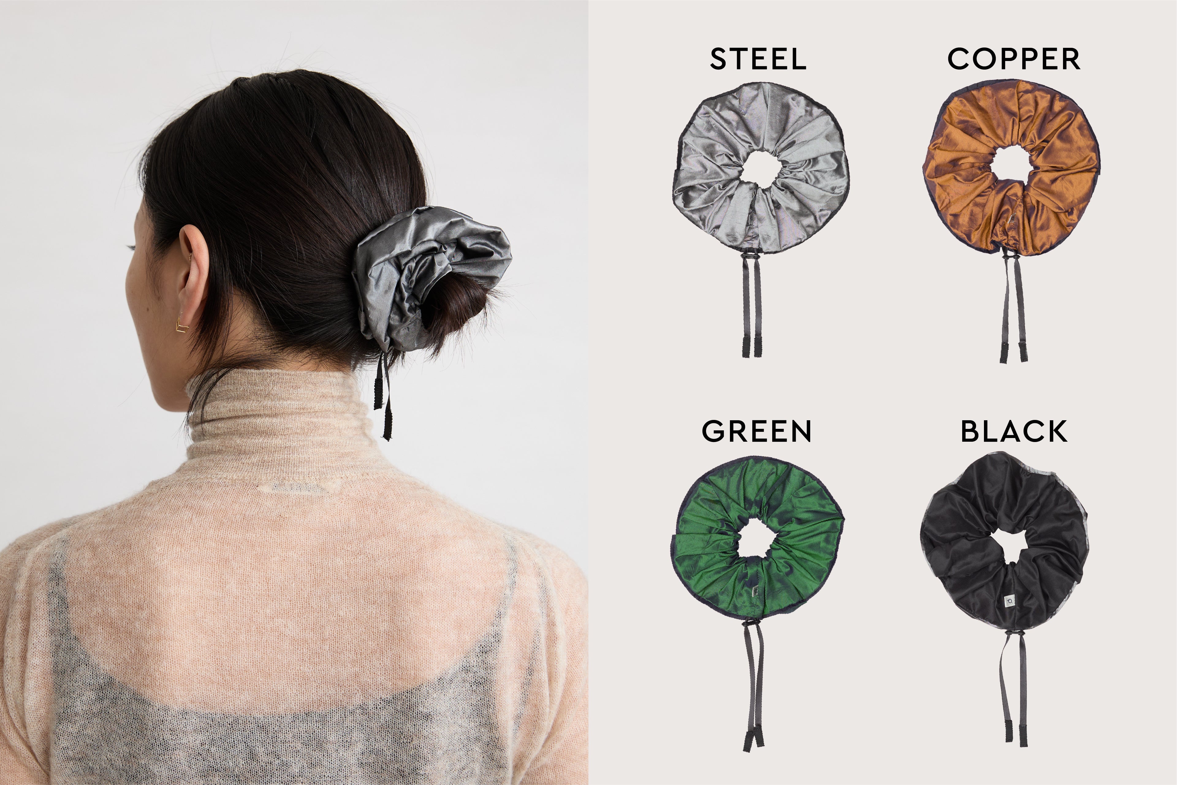 米沢織りのシルクタフタで仕立てたシュシュも同時販売します。