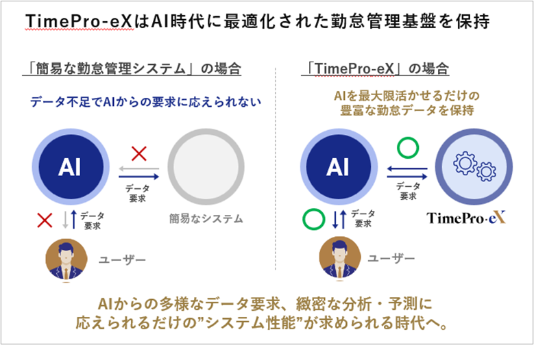 「TimePro-eX」は、業界最高峰の性能とそれを活かす自社SEの伴走支援力を兼ね備えており、まさにAI時代に最適化された勤怠管理基盤です。