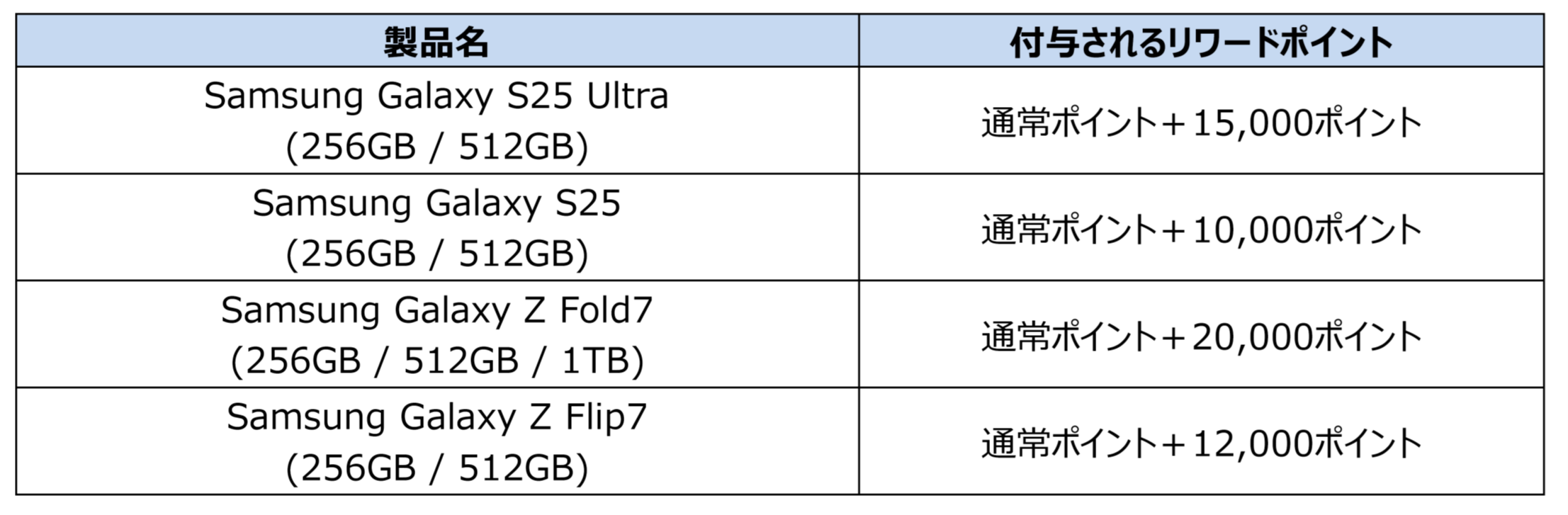 ※追加進呈のSamsungリワードポイントは製品到着翌日から約2週間(土日祝日除く)程度で反映される予定です。