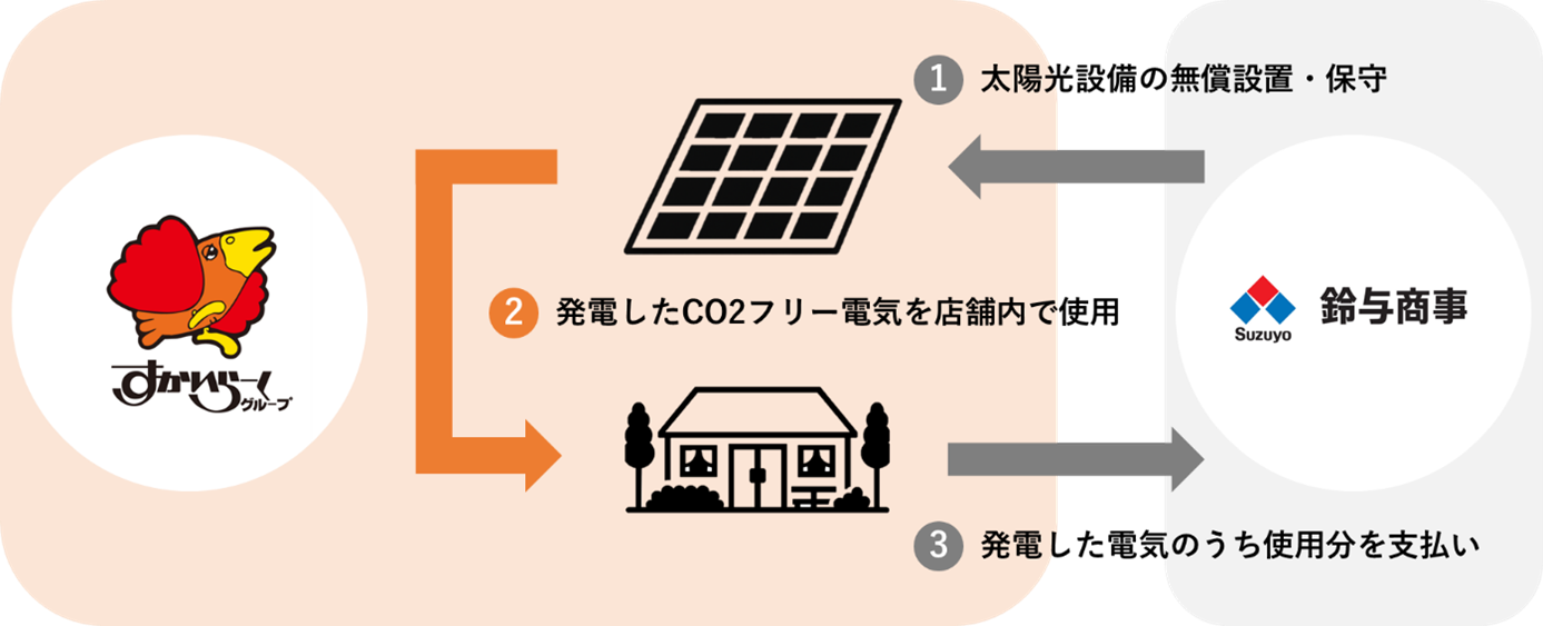 鈴与商事株式会社(本社:静岡市、代表取締役社長:伊藤 正彦、以下「鈴与商事」)と株式会社すかいらーくホールディングス(本社:東京都武蔵野市、代表取締役社長COO:金谷 実、以下「すかいらーくHD」)は、すかいらーくHDが展開する飲食チェーンの低圧受電店舗において、初めてオンサイトPPA※1サービスにより太陽光発電設備を導入し、運転を開始したことをお知らせいたします。