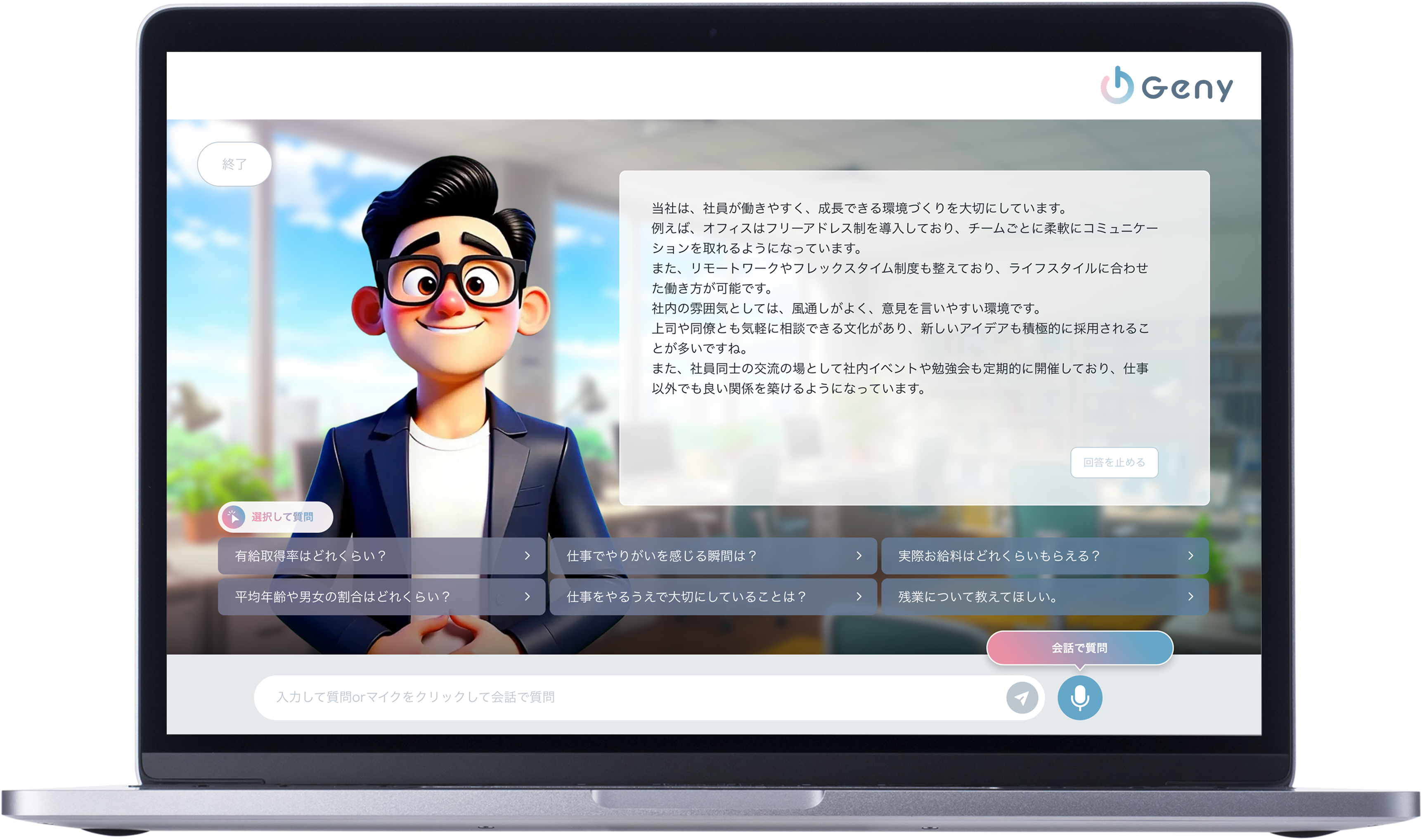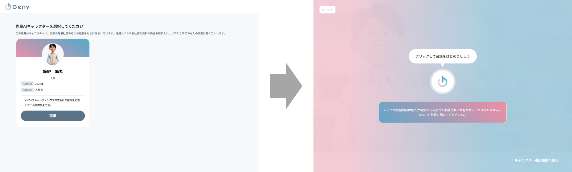 KNT-CTホールディングス株式会社(本社:東京都新宿区、代表取締役社長:小山佳延)は、株式会社lean(所在地:東京都千代田区、代表取締役:津島優美)が開発したAIアバターサービス「Geny(ジーニー)」を、来春当社への入社が内定している学生の皆さまを対象に、このほど試験導入いたしました。