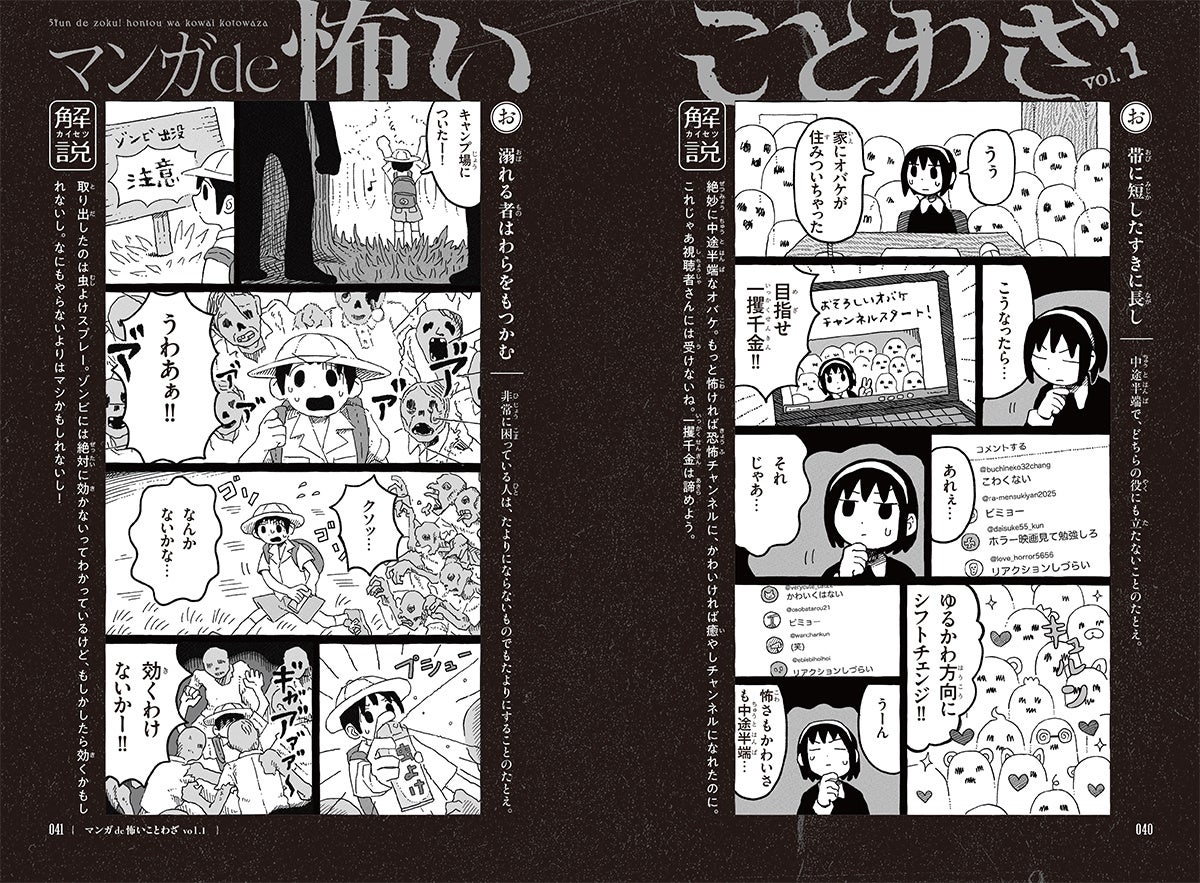 ▲怖い話のあとに、ことわざが現れます(画像は誌面サンプルです)