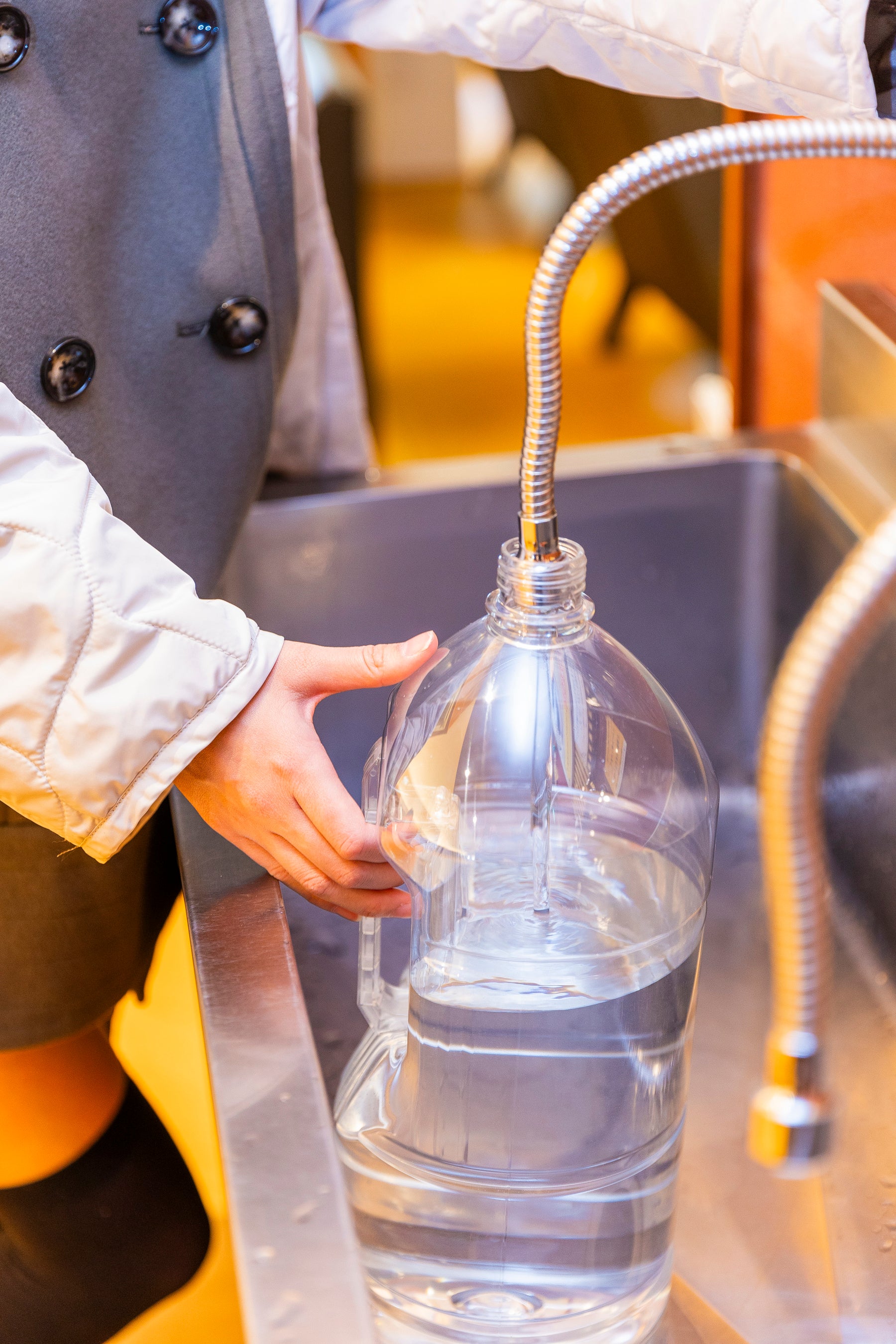 〈おひとり様1容器5リットルまで〉汲んでお持ち帰りいただけます。