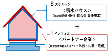木造住宅のスケルトン部分(基礎・構造躯体)を積水ハウスグループが設計・施工し、アルネットホームがインフィル部分(外装・内装・設備)を施工するそれぞれの強みを活かした新しい家づくりのカタチです。積水ハウスはオリジナルの耐震技術「ダイレクトジョイント構法(DJ構法)」や「積水ハウス建設による高精度な施工」、「高強度耐力壁」などの技術力や高い耐震性、また4号特例の縮小に対応し、全棟の許容応力度による構造計算を提供いたします。そしてアルネットホームでは、創業46年間で累計10,000棟以上の注文住宅をお引渡ししてきた実績を活かし、地域特性を理解した「高い断熱性能」を始めとした、基本性能の高さと、家事動線やキッズ動線などの暮らしを豊かにする家づくりを提供いたします。お客様に安全性と快適性を両立した新たな選択肢を提供し、SI-COLLABORATIONでしか得られない良質な住宅ストックの形成に貢献してまいります。