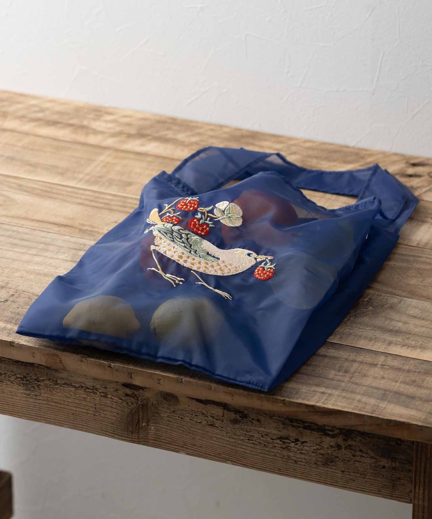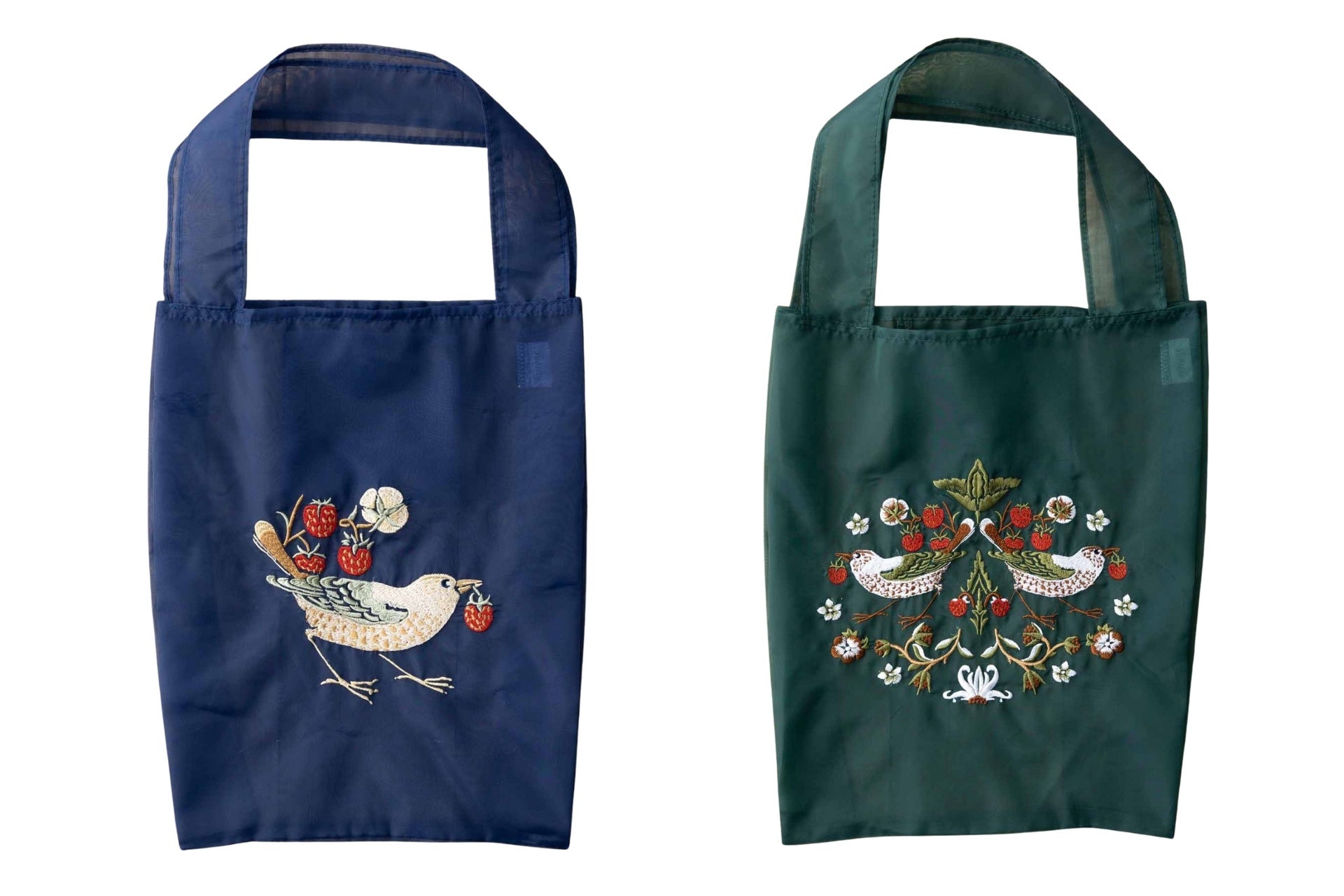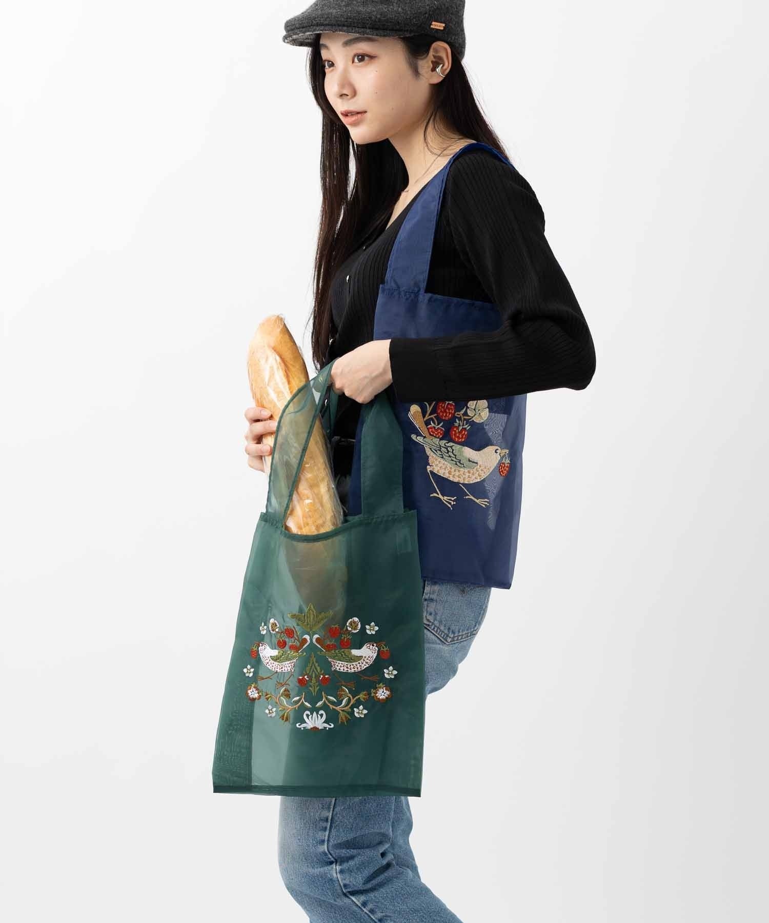 ウィリアムモリス柄 オーガンジー 刺繍エコトートバッグ