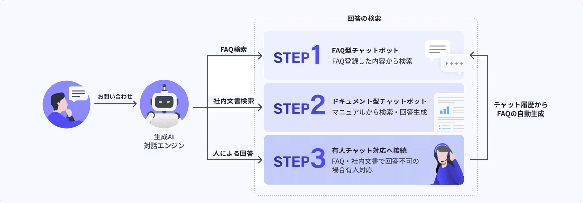 日立製作所では今回のドキュメント検索機能導入により、自動回答率を7割に向上させることを目標としています。さらに、FAQやドキュメント検索での回答で解決しない問い合わせについても、適切な担当者への有人連携を行い、その後の応対ログからFAQを自動生成するAIエージェントも活用することで、ナレッジの活用と継続的な蓄積、自動回答率の向上に至る一連のサイクルをワンストップで実現します。