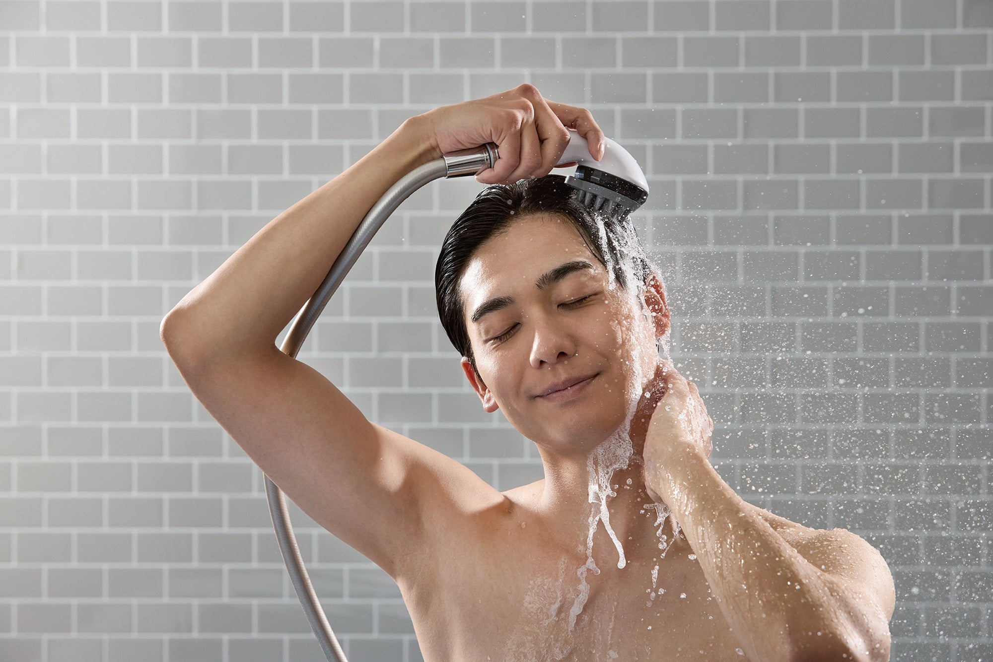 当製品は《頭に「洗濯機」をつくるイメージ》で開発したブラシ一体型シャワーヘッドです。独自の発生機構(※2)によるファインバブルを含む強力水流とブラシの相乗効果で、頭皮・毛穴の洗浄をサポートします。ブラシで髪をかき分け、水流を頭皮に直撃。汚れを洗い流しつつ、ブラシによる物理的な刺激も加わって血行を促進し、頭皮環境を整えます。ブラシは着脱可能。ご自宅のシャワーヘッドとワンタッチで付け替えて使用する「使い分け」を前提とした単一機能のシャワーヘッドです。当社では「+1」をキーワードに、機能を一つに絞ることで「低価格」「高耐久」「機能の特化」を目指す、新しいシャワーの形を提案しております。