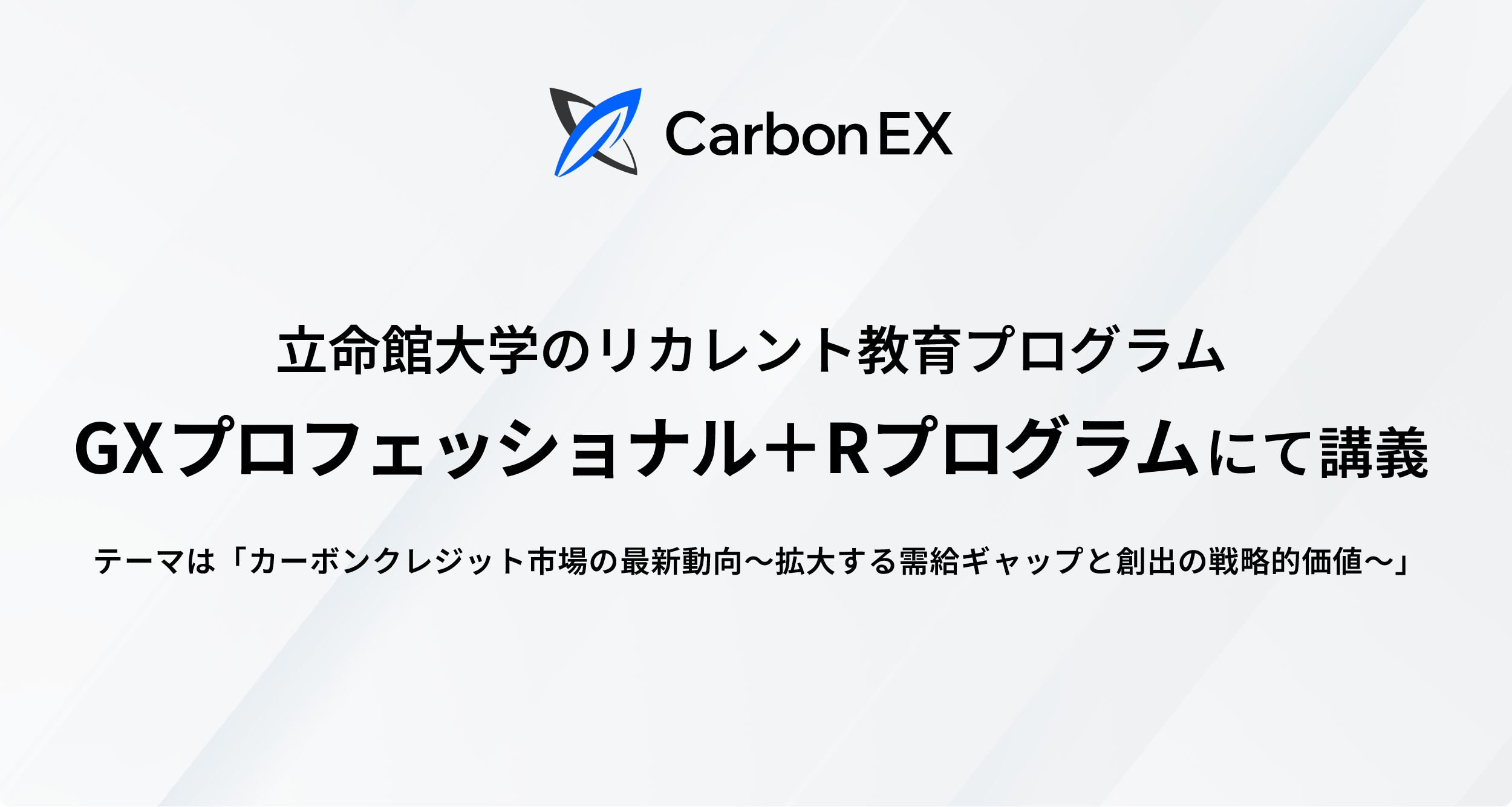 Carbon EX株式会社(本社:東京都港区、代表取締役:西和田浩平、竹田峻輔、以下「当社」)の営業本部長 中野 征治が、立命館大学が新たに開講するリカレント教育プログラム「GXプロフェッショナル+Rプログラム」において、GX(グリーン・トランスフォーメーション)経営領域の立命館アカデミックセンター講師として登壇します。