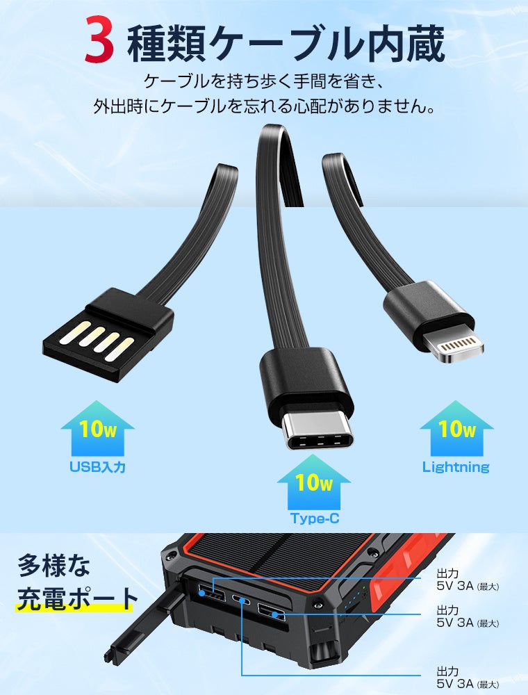コード忘れやアダプター不足の心配がなく、旅行・出張・非常用持ち出し袋にも最適。